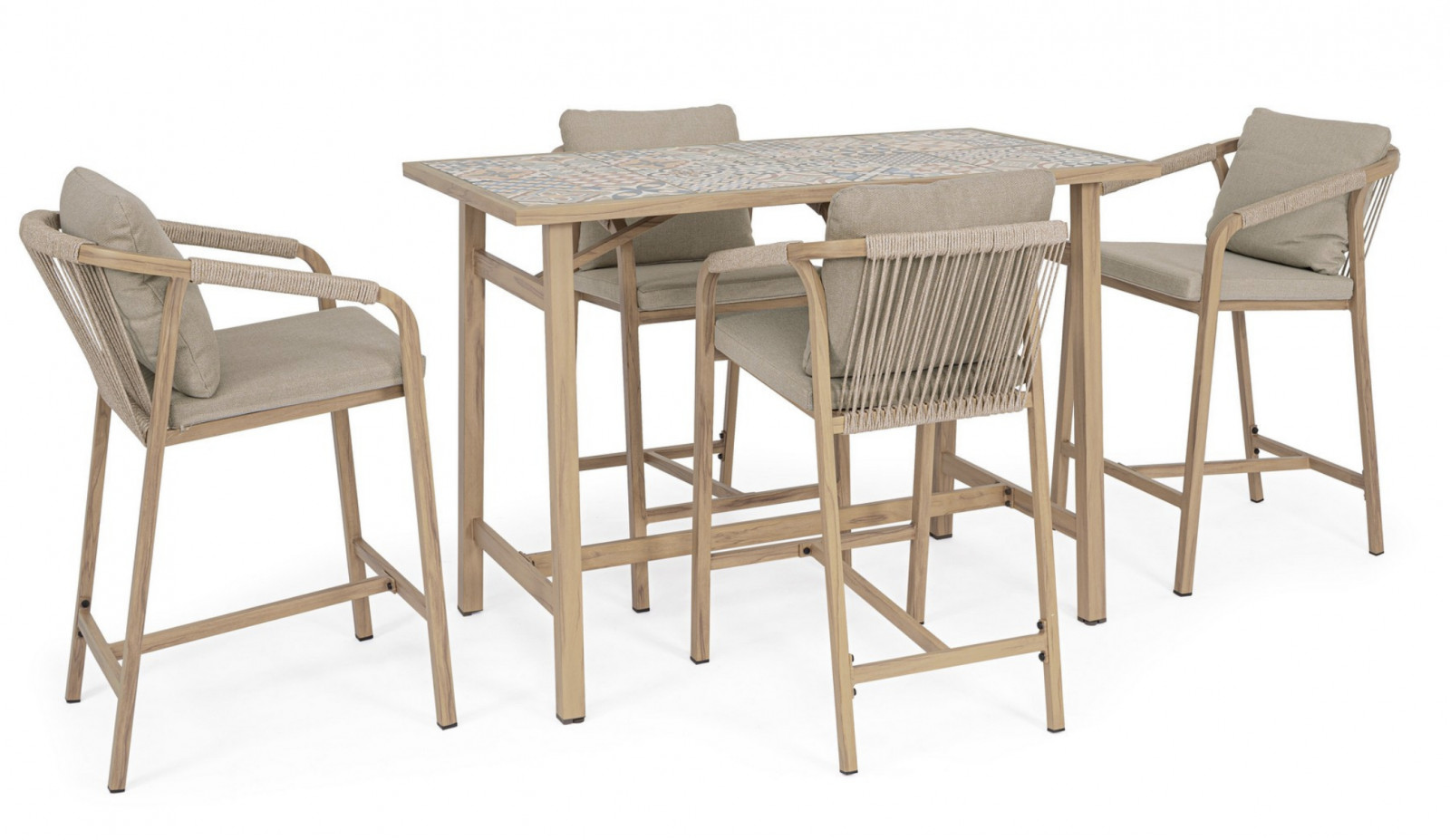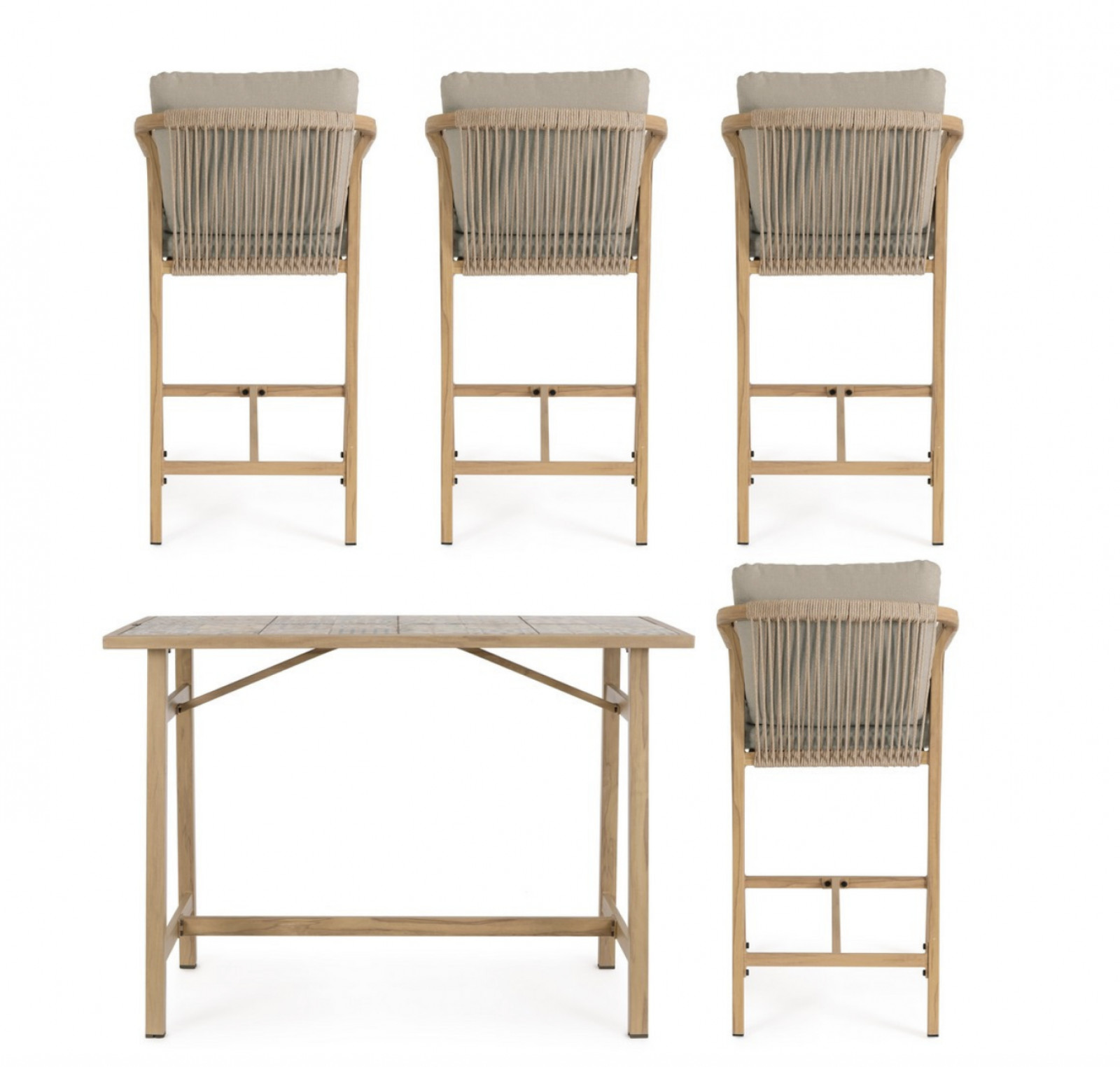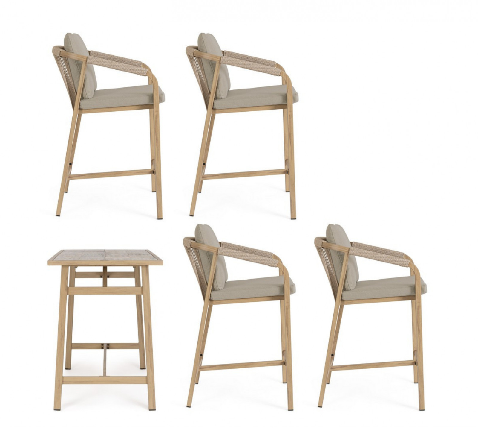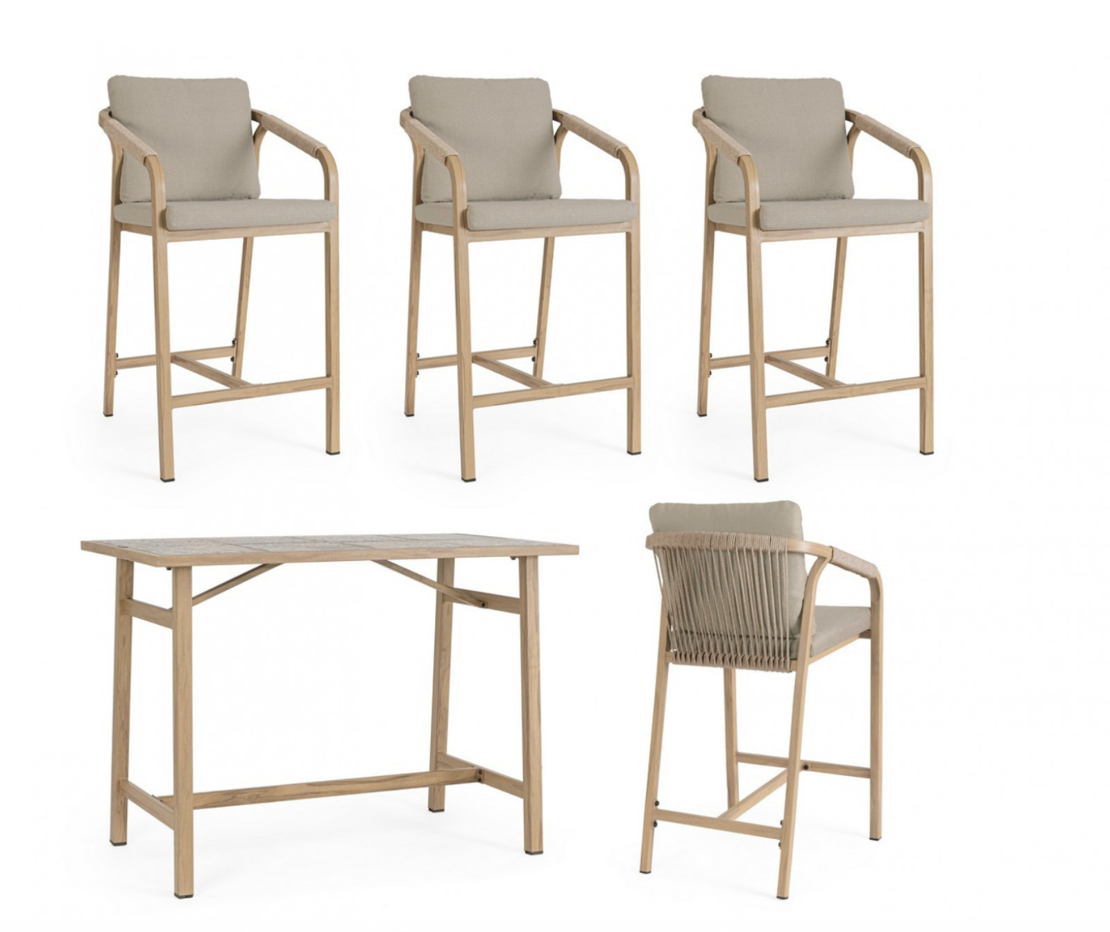 A szett 4db széket, és 1db bárasztalt tartalmaz