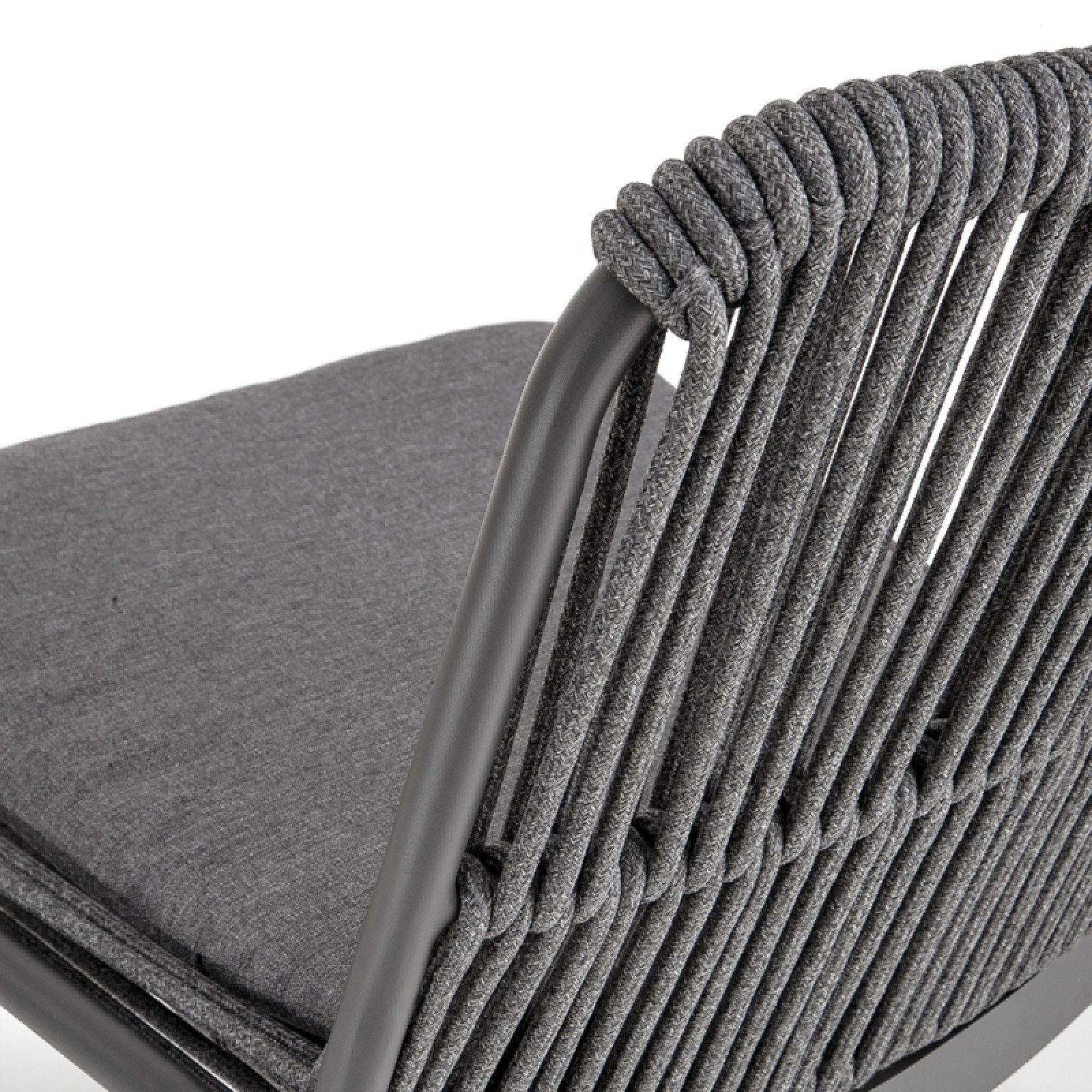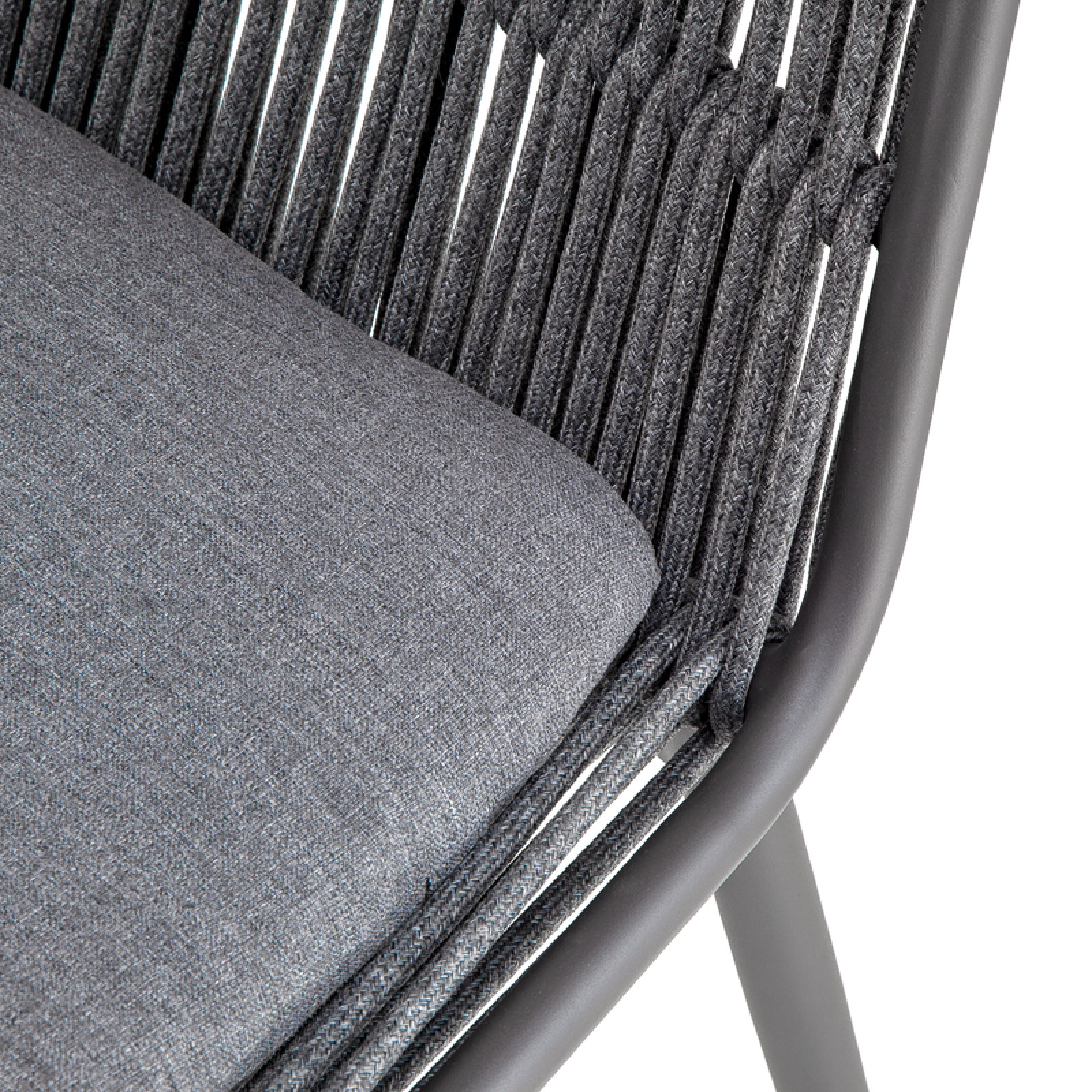 A CAMOTES olasz tervezésű, prémium minőségű kerti szék. A magas minőségű akril szövettel bevont párnák rendkívül tartósak, ellenállnak az UV-sugárzásnak és víztaszítóak. A bútor háttámlája gumírozott akril kötélből készült, váza alumínium. A bútor exkluzivitását a minőségi anyaghasználat és az egyedi formaterv párosa adja.
