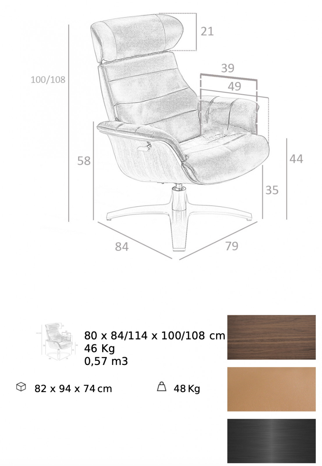 A CAMPANA fotel kifinomult és modern. A minőségi marhabőrrel borított fotel nemcsak látványos, de rendkívül kényelmes is. A tervezők a gyönyörű ülőfelületet hajlított diófával kombinálták, mellyel lenyűgöző összhatást értek el. Exkluzív darabja lehet egy modern otthonnak vagy irodának ez a gyönyörű fotel, mely manuálisan vezérelhető relaxfunkcióval rendelkezik. A minőségi megmunkálás és anyaghasználat azonnal szembetűnik a bútordarabon, melyet spanyol designerek terveztek. A fotel tökéleteseten ötvözi a kifinomult eleganciát és a magas komfortot.