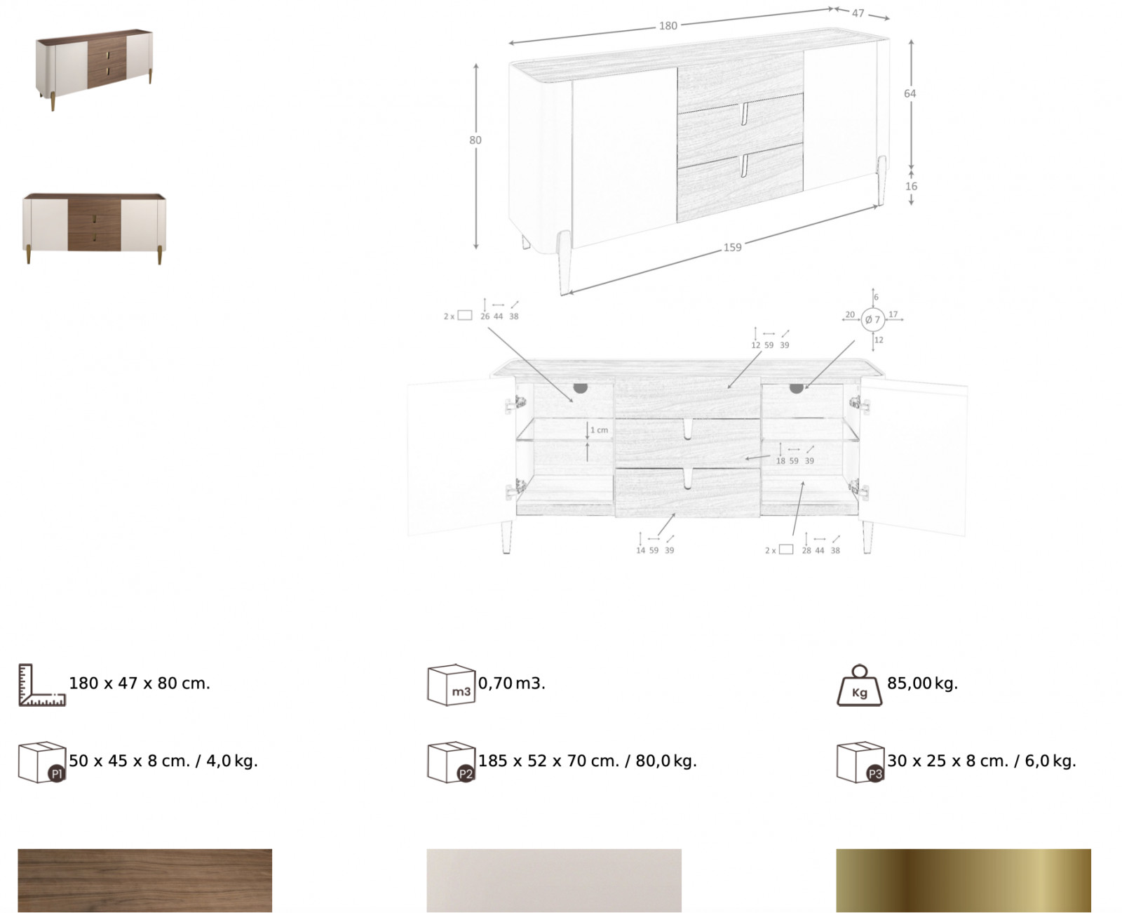 A CASAVELLA komód eleganciája ámultba ejtő. A csodás diófa furnérral borított fedlapot és fiókokat modern beige korpusz öleli körbe, melyet letisztult szálcsiszolt fém lábak egészítenek ki. A naturális fa és a modern fém letisztult összhangot alkotnak. Káprázatos dísze lehet egy modern enteriőrnek ez a bútordarab.