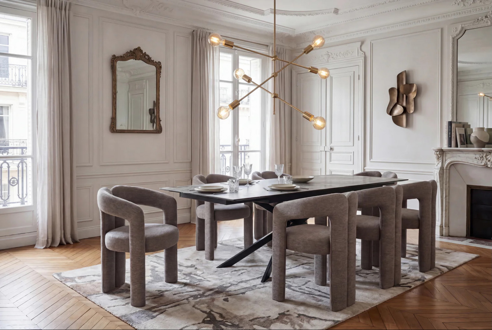 A forma egyszerre dekoratív és funkcionális, így a szék ideális választás az étkezőbe.