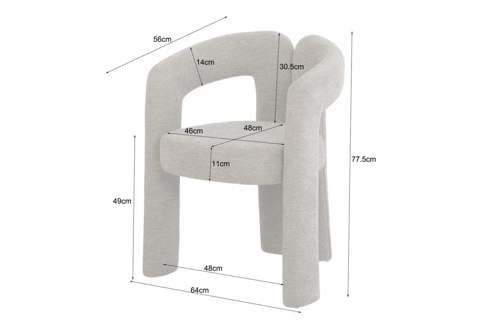A különleges teddy (bouclé) szövetkárpit puha, meleg tapintású felületet biztosít, amely vizuálisan és érzetre is otthonosságot sugároz. Az árnyalat tovább erősíti a könnyed, elegáns összhatást, így a szék tökéletesen illeszkedik modern vagy természetközeli enteriőrökbe.