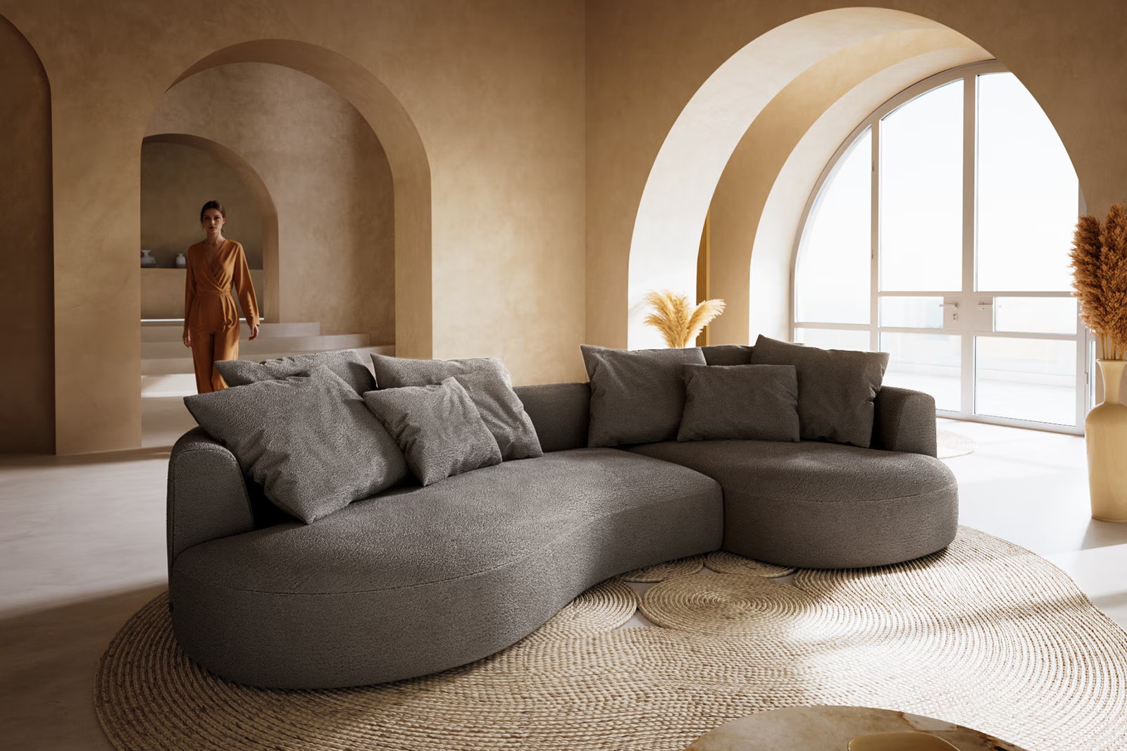 COLMAN modern kanapé - szürke bouclé - 328cm bemutatása