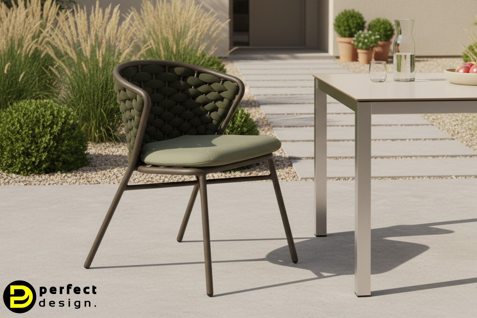 A COMORE szék olasz tervezésű, prémium minőségű kerti bútor. A magas minőségű olefin bevonatú párnák rendkívül tartósak, ellenállnak az UV-sugárzásnak és víztaszítóak. A székek háttámlája (oldala) textilene kötélből készült, vázuk alumínium. A bútor exkluzivitását a minőségi anyaghasználat és az egyedi formaterv párosa adja.