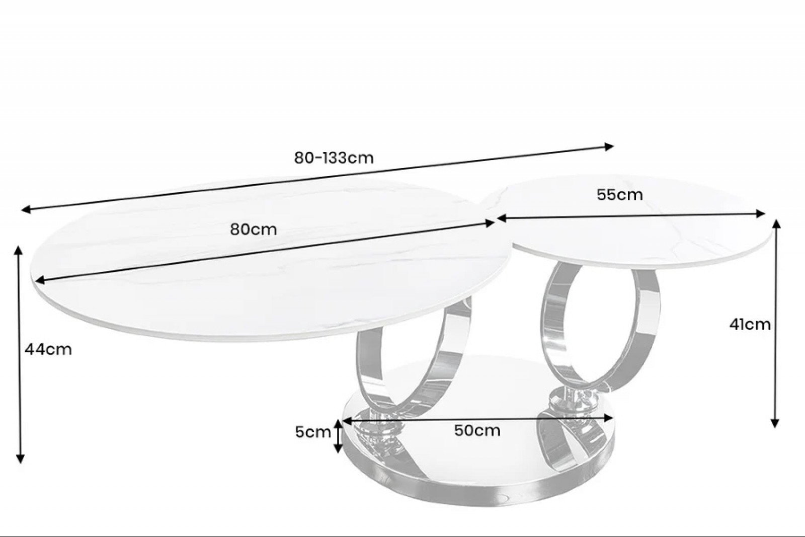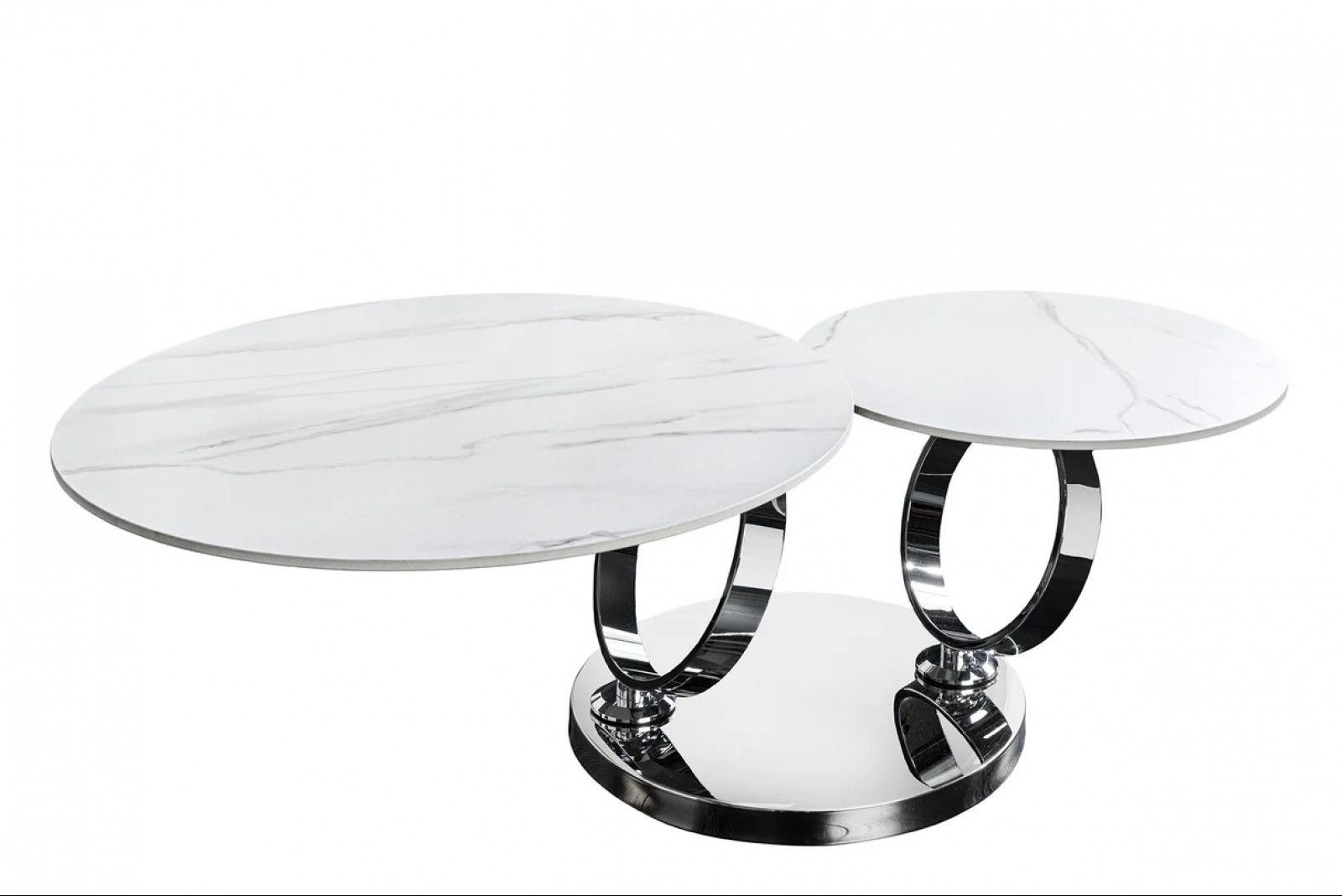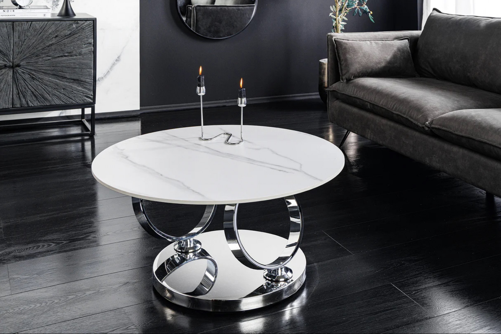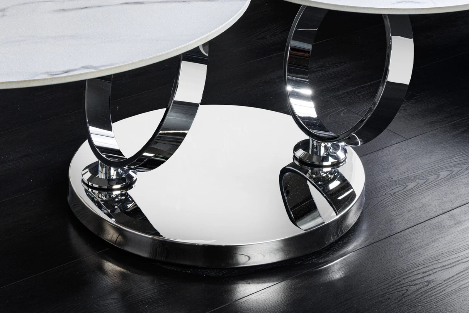 DANCING RINGS exkluzív kerámia dohányzóasztal - fehér/króm
