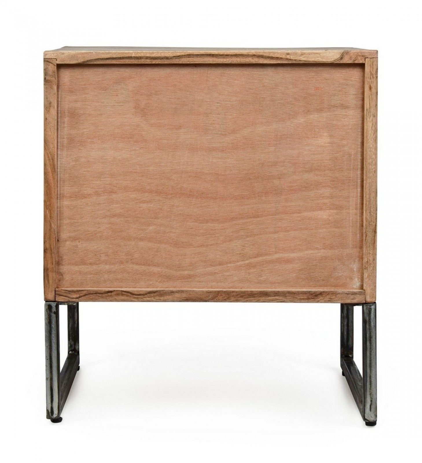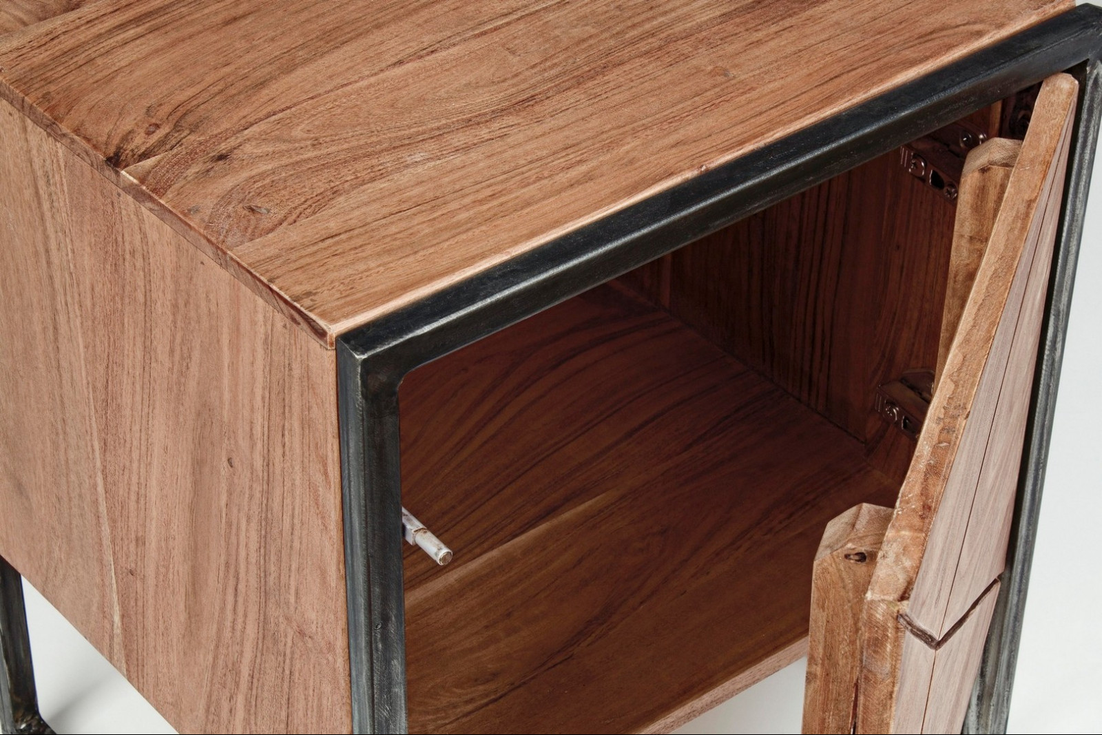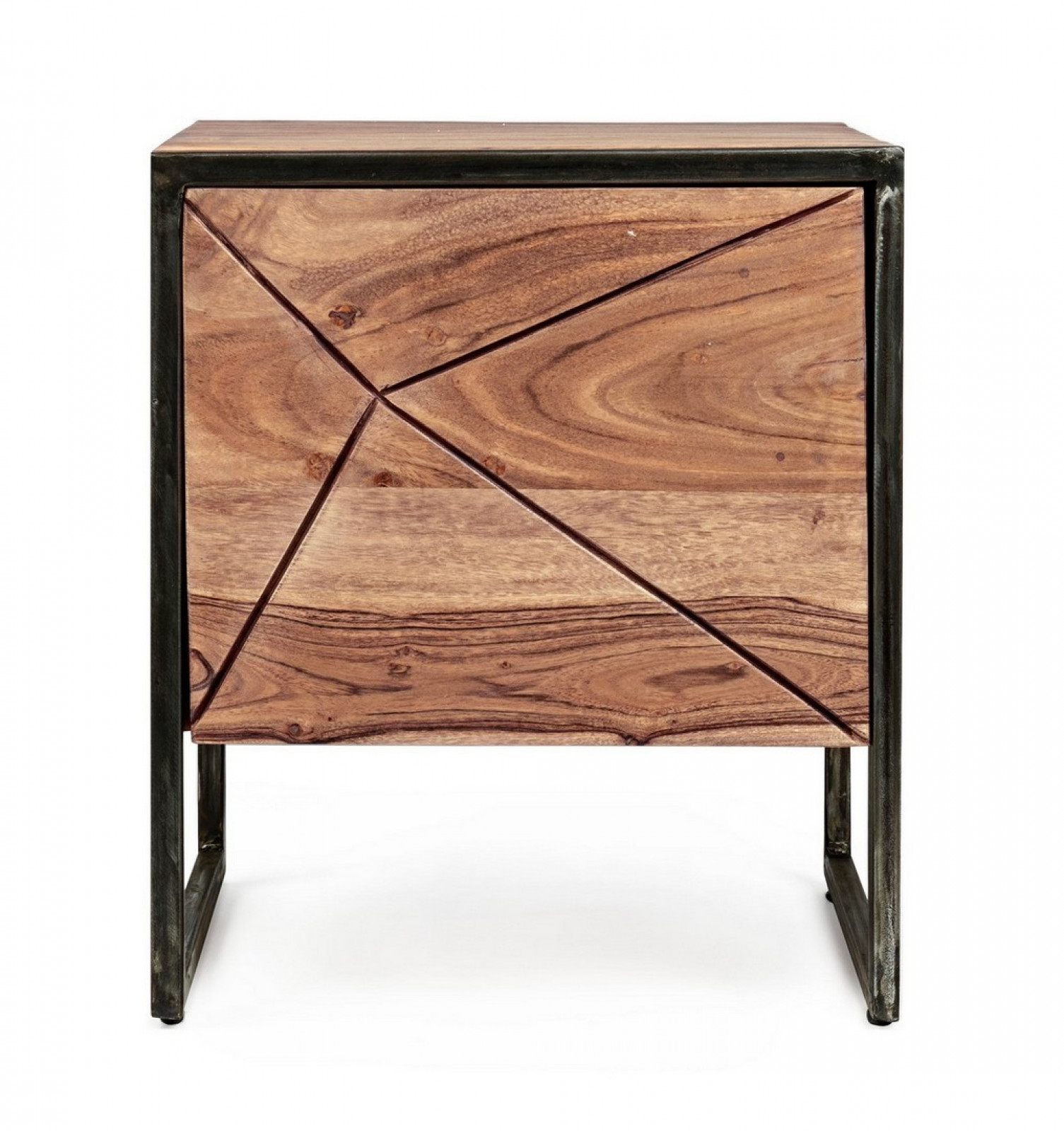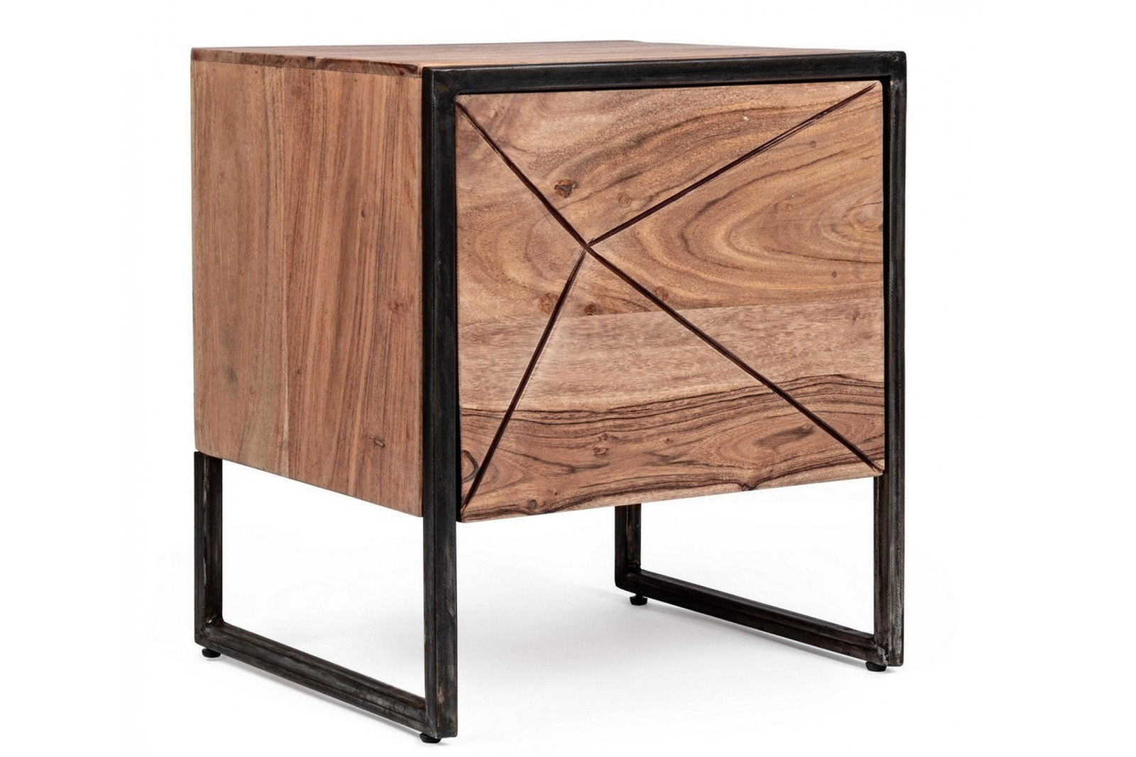 Az EGON éjjeliszekrény gyönyörű mintázatú akácfából készült. A minimalista vonalvezetés kiemeli a fa természetes szépségét, melyet a geometrikus mintázatban bemart front tesz különlegessé. A modern fekete fém keret és a naturális fa csodás párost alkot.
