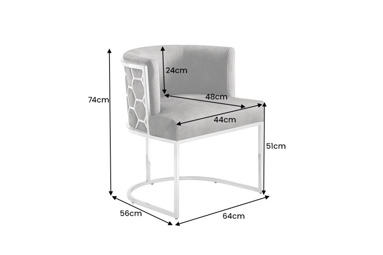 Az  ELEGANZA szék a kifinomult formavilág és a modern luxus találkozása. A puha, zöld bársony selymes tapintása és elegáns fénye azonnal emeli a tér hangulatát. A rozsdamentes acél lábak és karfák csillogó felülete könnyed kontrasztot alkot a textil mély tónusával, miközben stabilitást és nemes megjelenést biztosít.