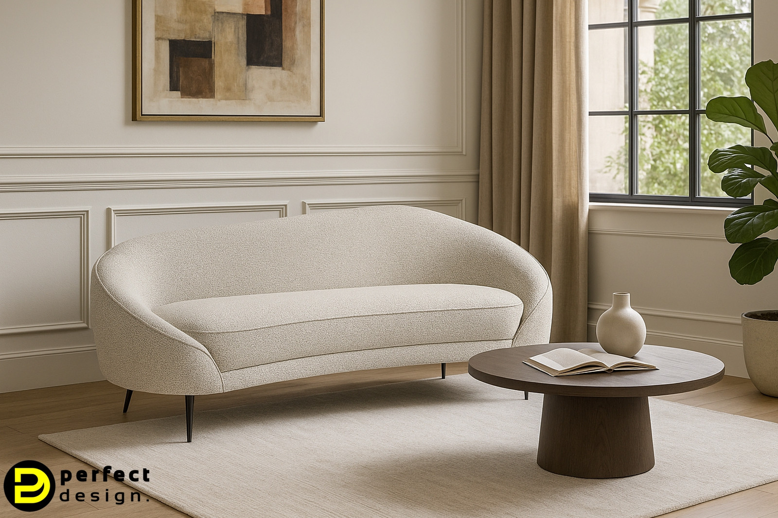 Az ELORIA kanapé a modern formatervezés és a kifinomult kényelem találkozása. A hullámzó vonalvezetésű háttámla játékos aszimmetriát visz a megjelenésbe, miközben a puha strukturált szövet otthonos melegséget sugároz.