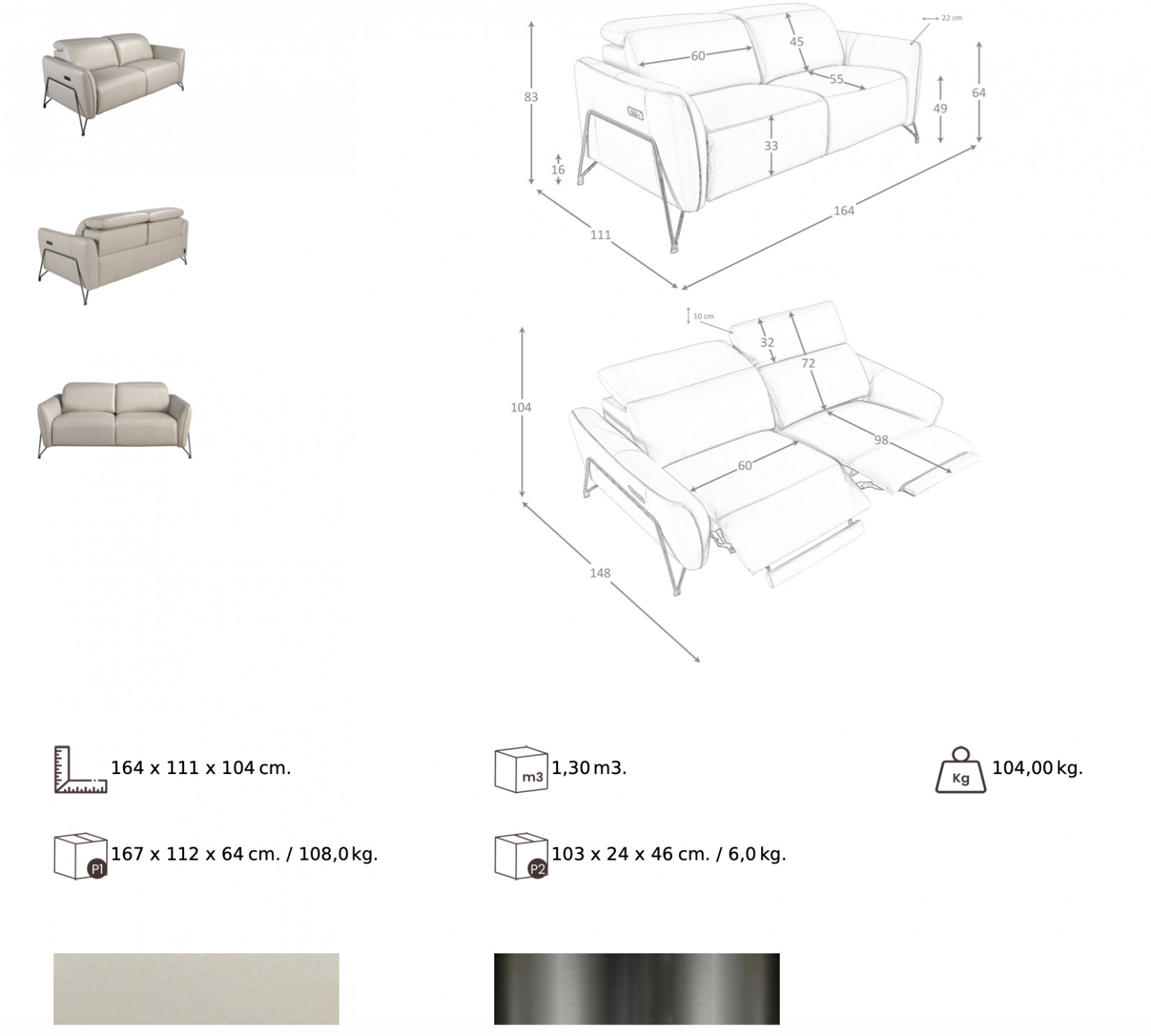 Az ESPOSITO kanapé letisztult és stílusos. A minimalista vonalvezetésű kanapét kiváló minőségű bőrrel borították tervezői, emellett nagy hangsúlyt fektettek a kényelemre, így az ülőfelületek elektromos relaxfunkcióval vannak ellátva, illetve fejtámlájuk is állítható. A relaxfunkció biztosítja, hogy beállíthassa az Ön számára legkényelmesebb pozíciót minden tevékenységhez. A bútordarabot különlegessé teszik a különleges kialakítású rozsdamentes acél lábak. Exkluzív darabja lehet egy modern otthonnak vagy irodának ez a gyönyörű kanapé. A minőségi megmunkálás és anyaghasználat azonnal szembetűnik a bútordarabon, melyet spanyol designerek terveztek.