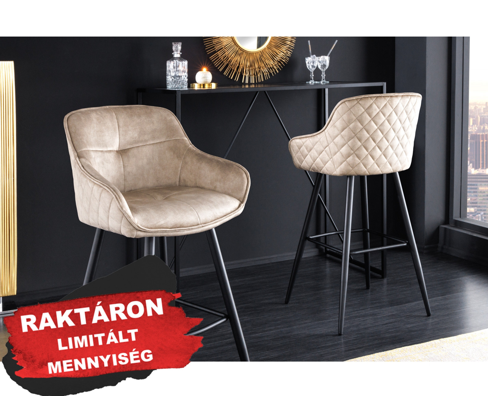 EUPHORIA design bársony bárszék - beige bemutatása