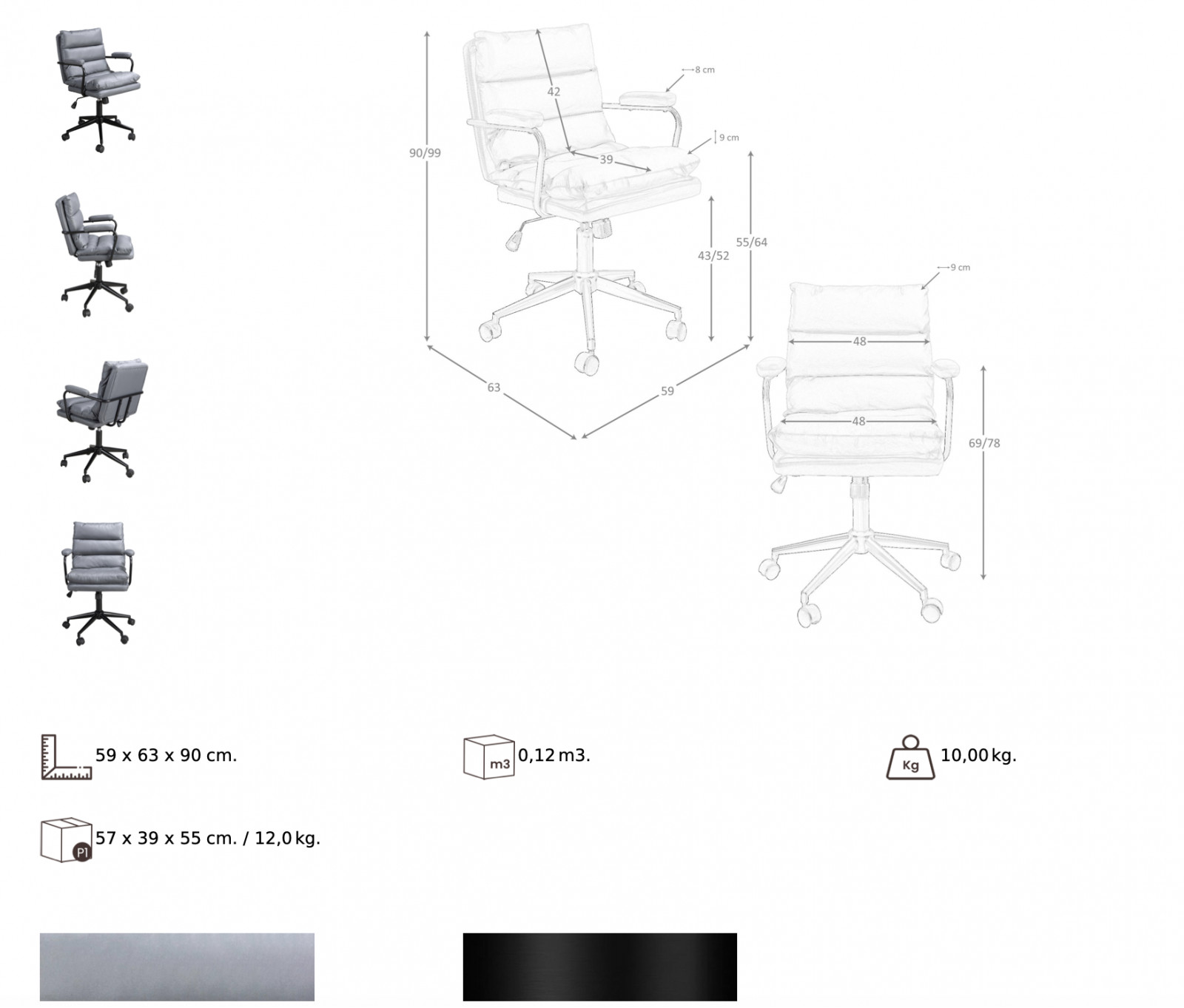 Méret: 59cm x 63cm x 90/99cm (szélesség x mélység x magasság)