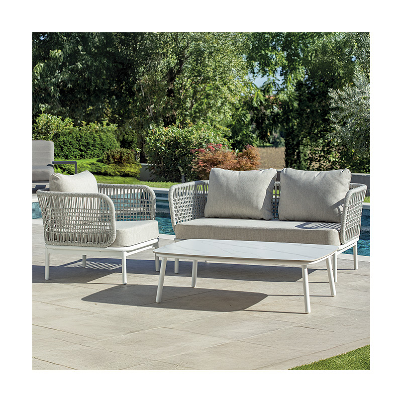 A stabil, időjárásálló alumínium szerkezetet vastag, kültéri használatra tervezett párnák egészítik ki, így a szett nemcsak látványban, hanem komfortban is prémium élményt nyújt. A GALIO egy kifinomult kültéri pihenőtér, ahol az olasz formatervezés időtálló stílusa és a valódi kényelem találkozik.