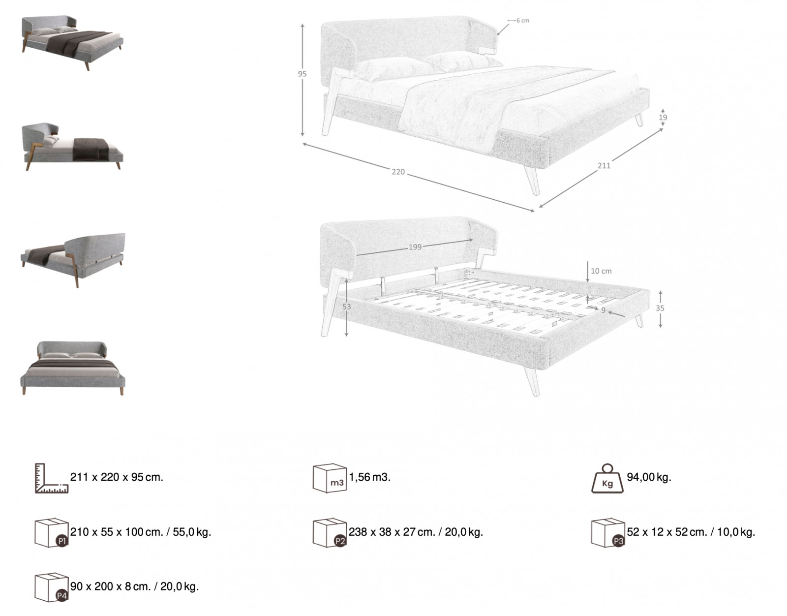 Méret: 211cm x 220cm x 95cm (szélesség x hosszúság x magasság)