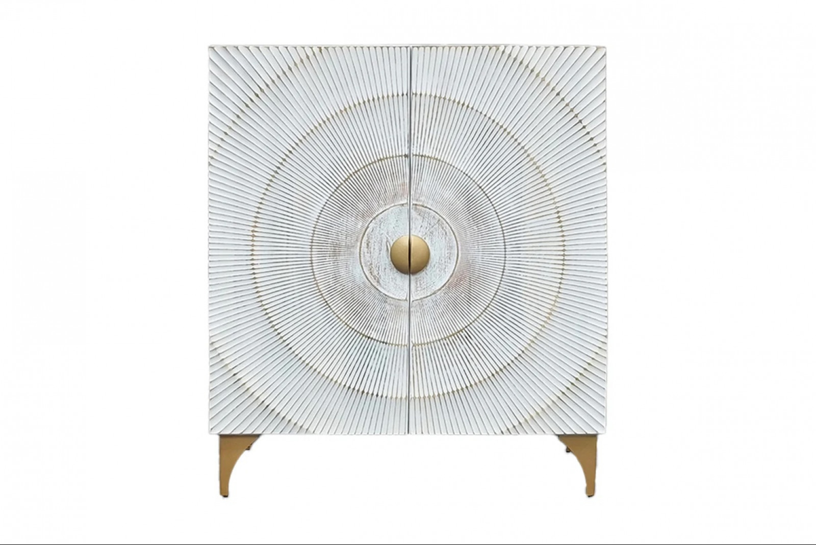 A GOLDEN SUNSET szekrény teljesen egyedi és káprázatos bútordarab. A szekrény korpusza tömör mangófából készült, frontját különleges mintázatú, a lemenő napot mintázó arany színű bemarás díszíti Ha szeretne egy olyan kortárs darabot ami sosem megy ki a divatból, és nap mint nap szeretne gyönyörködni a természet alkotta csodában, akkor remek választás ez a komód.