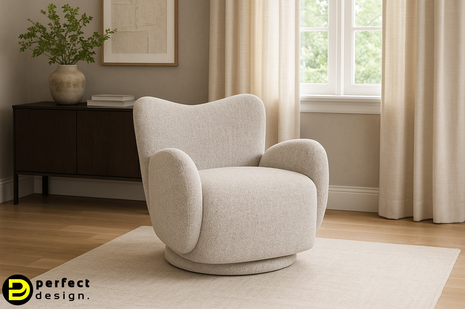 A HARPER fotel kerekded formái és ölelő háttámlája azonnal barátságos, hívogató megjelenést sugallnak. A világos kárpit tapintása puha és természetes, miközben letisztult textúrája elegánsan simul bármely enteriőrbe.
