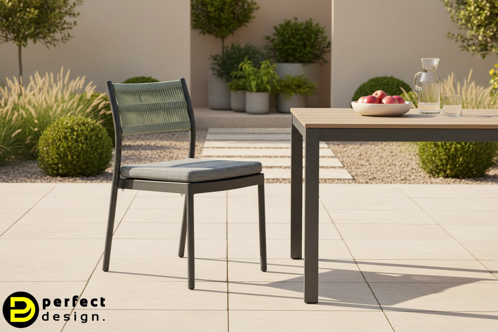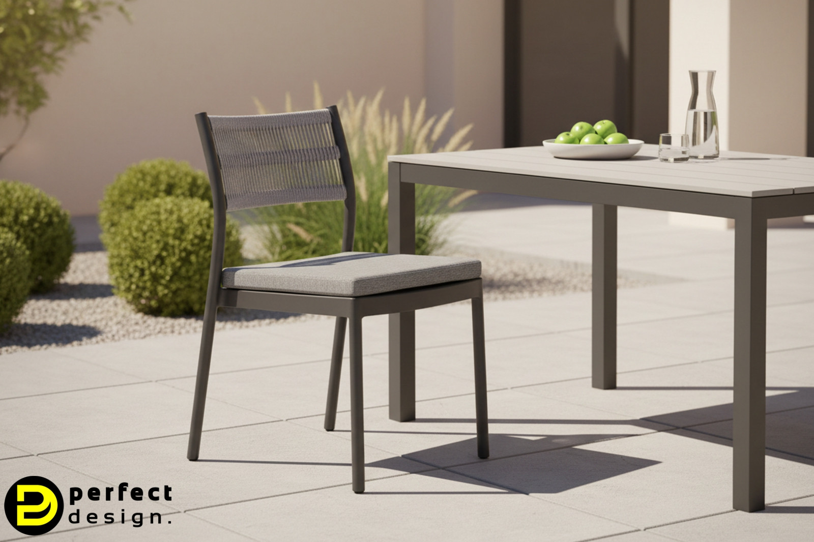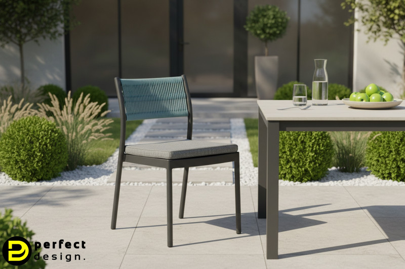 A HAVANNA külteri szék modern és letisztult. A minőségi akril szövetből készült párnák rendkívül tartósak, ellenállnak az UV-sugárzásnak és víztaszítóak. A székek háttámlája poliészter kötélből készült, vázuk alumínium.