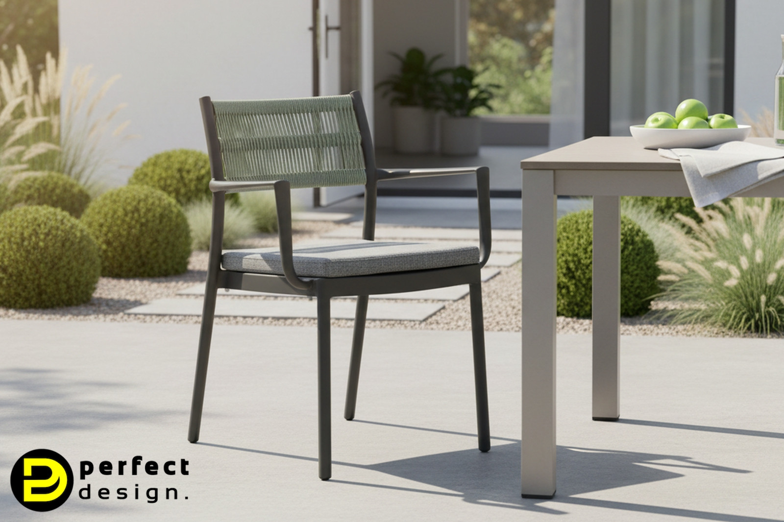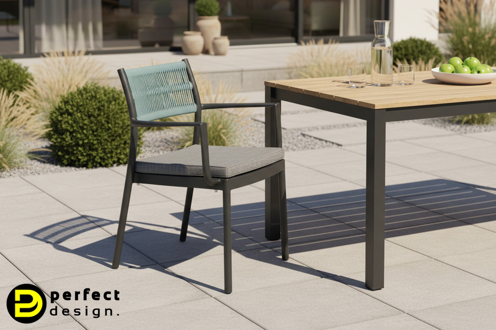 A HAVANNA külteri szék modern és letisztult. A minőségi akril szövetből készült párnák rendkívül tartósak, ellenállnak az UV-sugárzásnak és víztaszítóak. A székek háttámlája poliészter kötélből készült, vázuk alumínium.