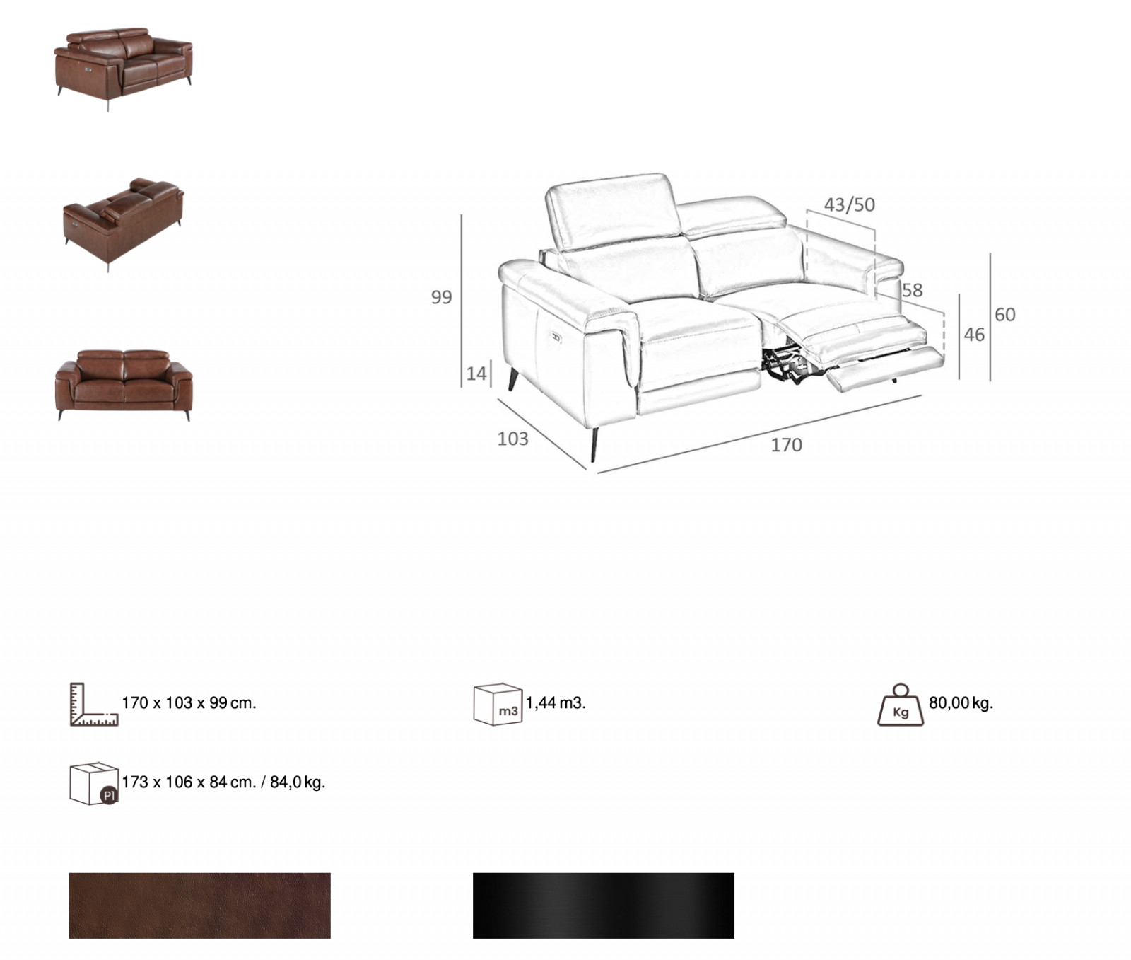 A HERMANAS kanapé letisztult és stílusos. A minimalista vonalvezetésű kanapét kiváló minőségű marhabőrrel borították tervezői, emellett nagy hangsúlyt fektettek a kényelemre, így a két ülést elektormos relax funkcióval látták el, illetve állítható fejtámlák biztosítják a komfortot.  Exkluzív darabja lehet egy modern otthonnak vagy irodának ez a gyönyörű kanapé. A minőségi megmunkálás és anyaghasználat azonnal szembetűnik a bútordarabon, melyet spanyol designerek terveztek.