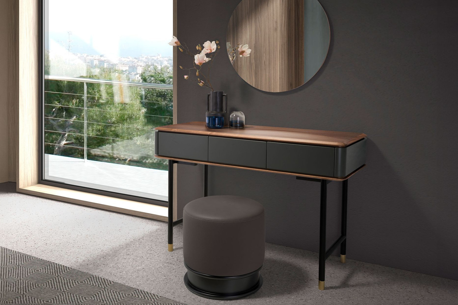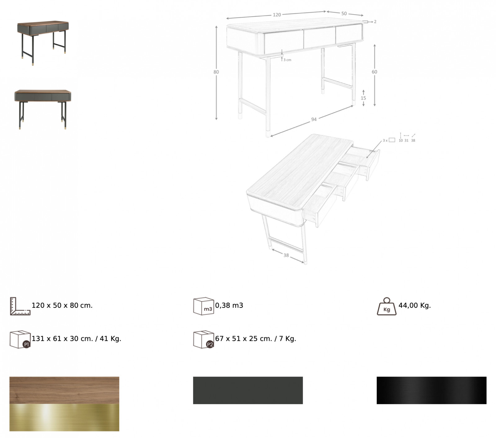 Az IGLESIAS konzolasztalról első pillantásra szembetűnik a letisztult eleganciája és minőségi kialakítása. A csodálatos diófával furnérozott fedlap páratlan összhangot alkot az elegáns matt szürke korpusszal, a különleges kialakítású acél lábak pedig fiatalos lendületet kölcsönöznek a bútornak. Lágyan záródó fiókjai praktikus tárolást tesznek lehetővé. A spanyol designerek által tervezett termék magas minőségű anyagok felhasználásával, gondos megmunkálással készült.