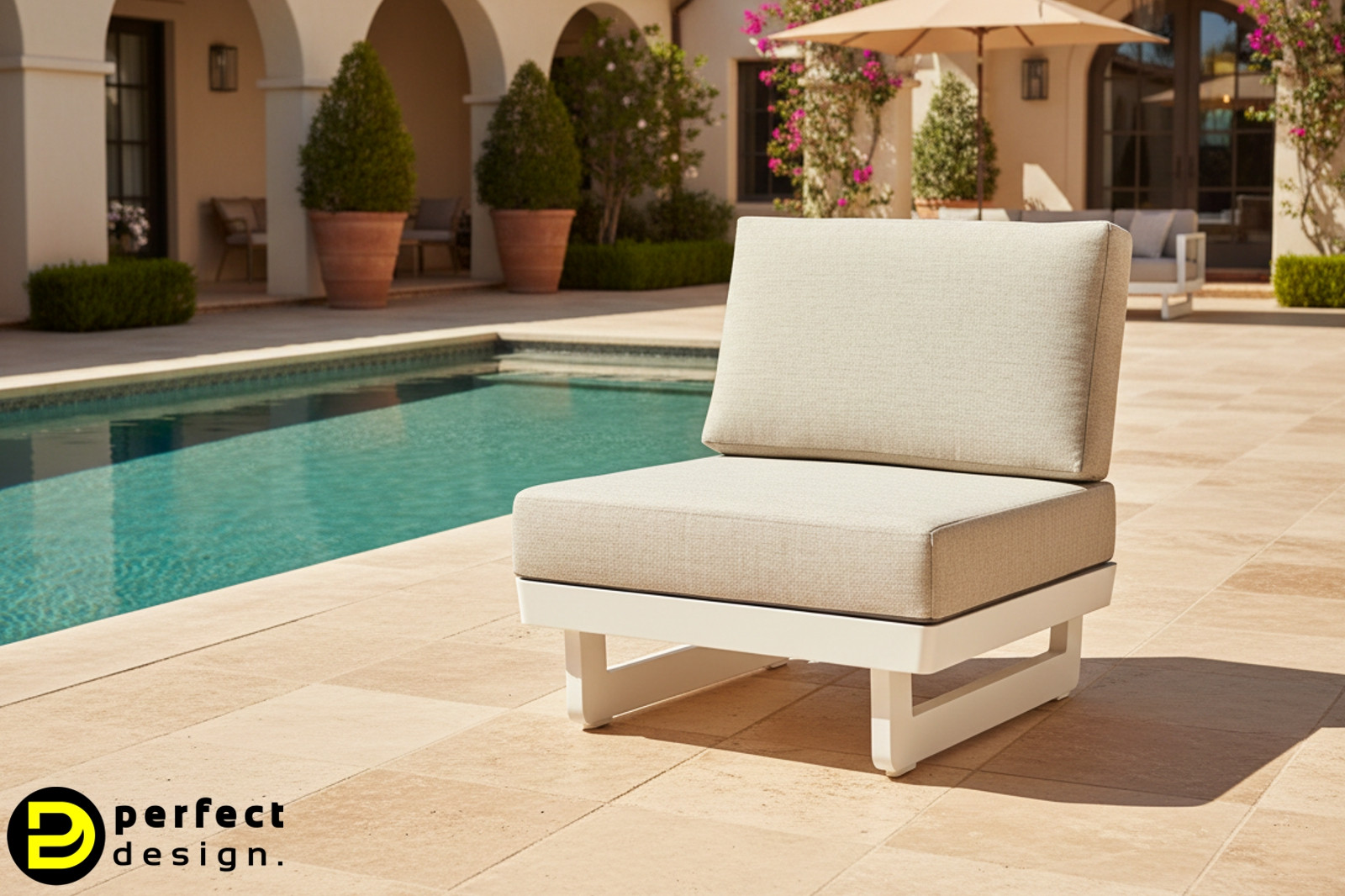 Az INFINITY kerti fotel olasz tervezésű, prémium minőségű kerti bútor. A magas minőségű olefinnel bevont párna rendkívül tartós, ellenáll az UV-sugárzásnak és víztaszító. A bútorok váza alumínium. A bútor exkluzivitását  a minőségi anyaghasználat és az egyedi formaterv párosa adja.