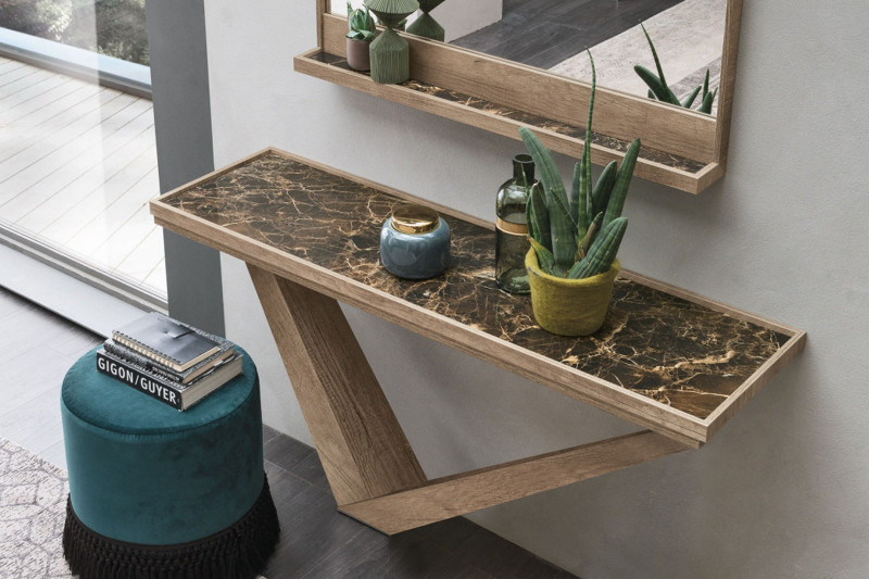 A KIRA konzolasztal  egy letisztult vonalvezetésű, modern, olasz designer bútordarab. A bútor különlegessége, hogy az asztalt márvány mintázatú kerámiából készült lap fedi. A korpusz magas minőségű laminált bútorlapból készült, a láb kialakítása igazán látványossá teszi a bútor megjelenését.