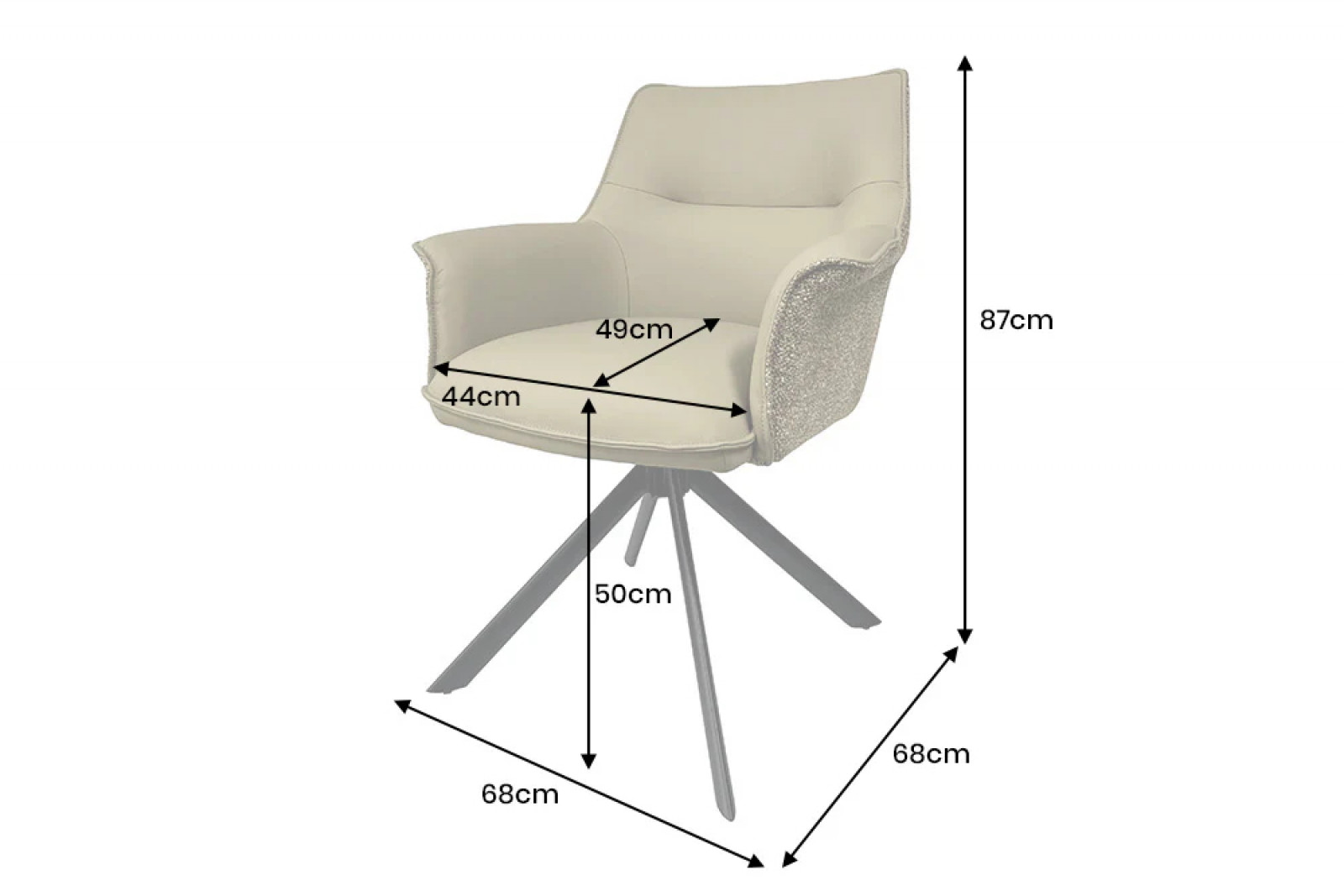 A háttámla és az ülőfelület kialakítása ergonomikus, így hosszabb időn át is kényelmes ülést biztosít. A szék különlegessége a 180°-ban forgatható ülőrész, amely kiválóan alkalmazkodik a modern életstílushoz, és különösen praktikussá teszi akár étkezőkben, vagy tárgyalókban.