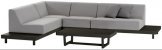 A kanapé moduláris elememekből épül fel. A szett tartalma 2db dupla elem, 1 db sarokelem, 1 db középelem és 1db dohányzóasztal.
