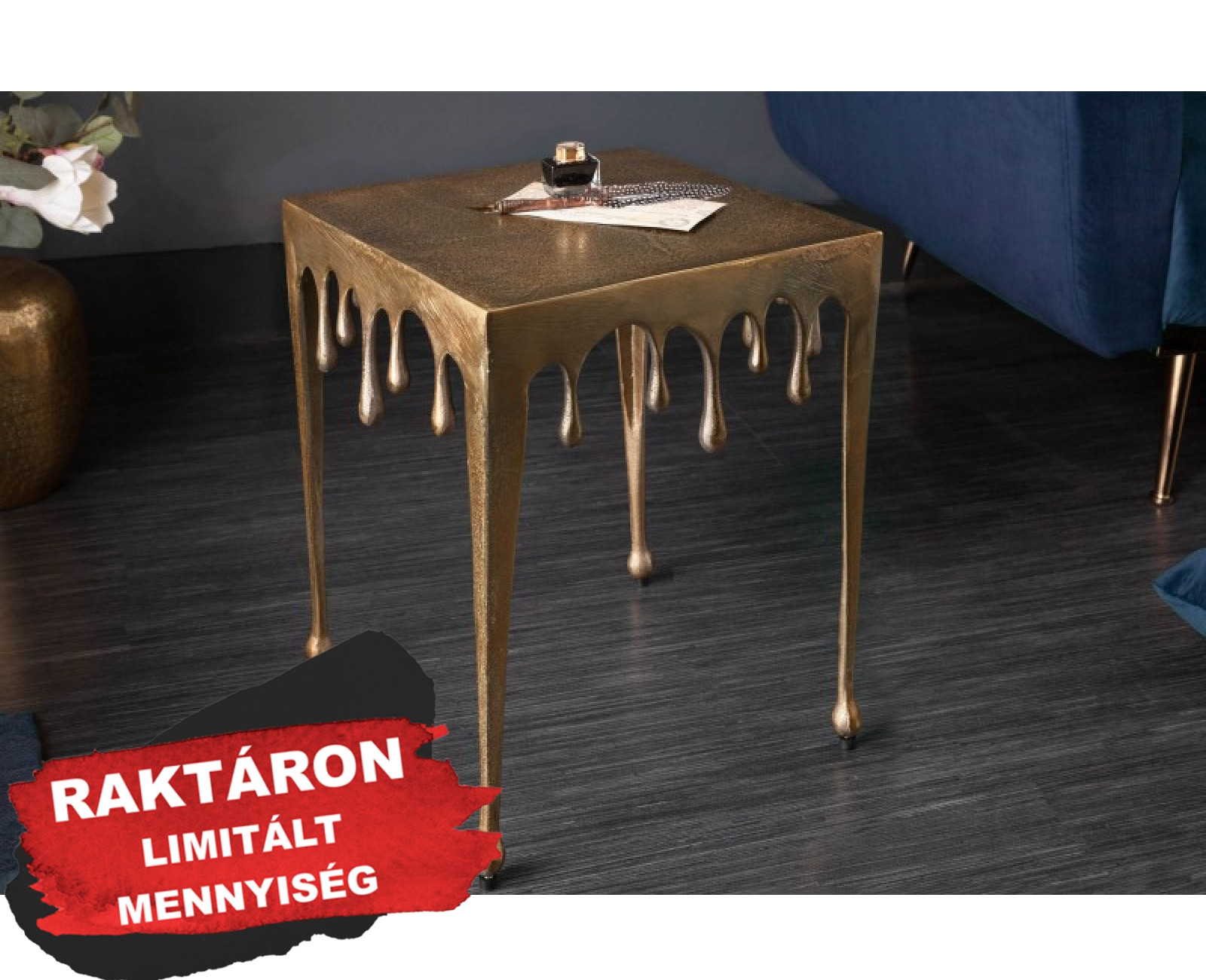 LIQUID design fém lerakóasztal - 34cm - arany bemutatása