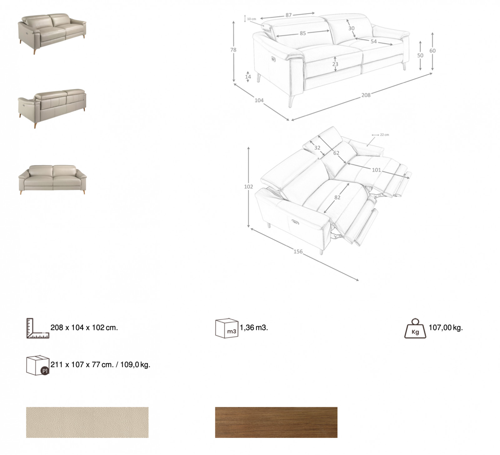 A LOGRONO kanapé letisztult és stílusos. A minimalista vonalvezetésű kanapét kiváló minőségű marhabőrrel borították tervezői, emellett nagy hangsúlyt fektettek a kényelemre, így a két ülést elektormos relax funkcióval látták el, illetve állítható fejtámlák biztosítják a komfortot.  Exkluzív darabja lehet egy modern otthonnak vagy irodának ez a gyönyörű kanapé. A minőségi megmunkálás és anyaghasználat azonnal szembetűnik a bútordarabon, melyet spanyol designerek terveztek.