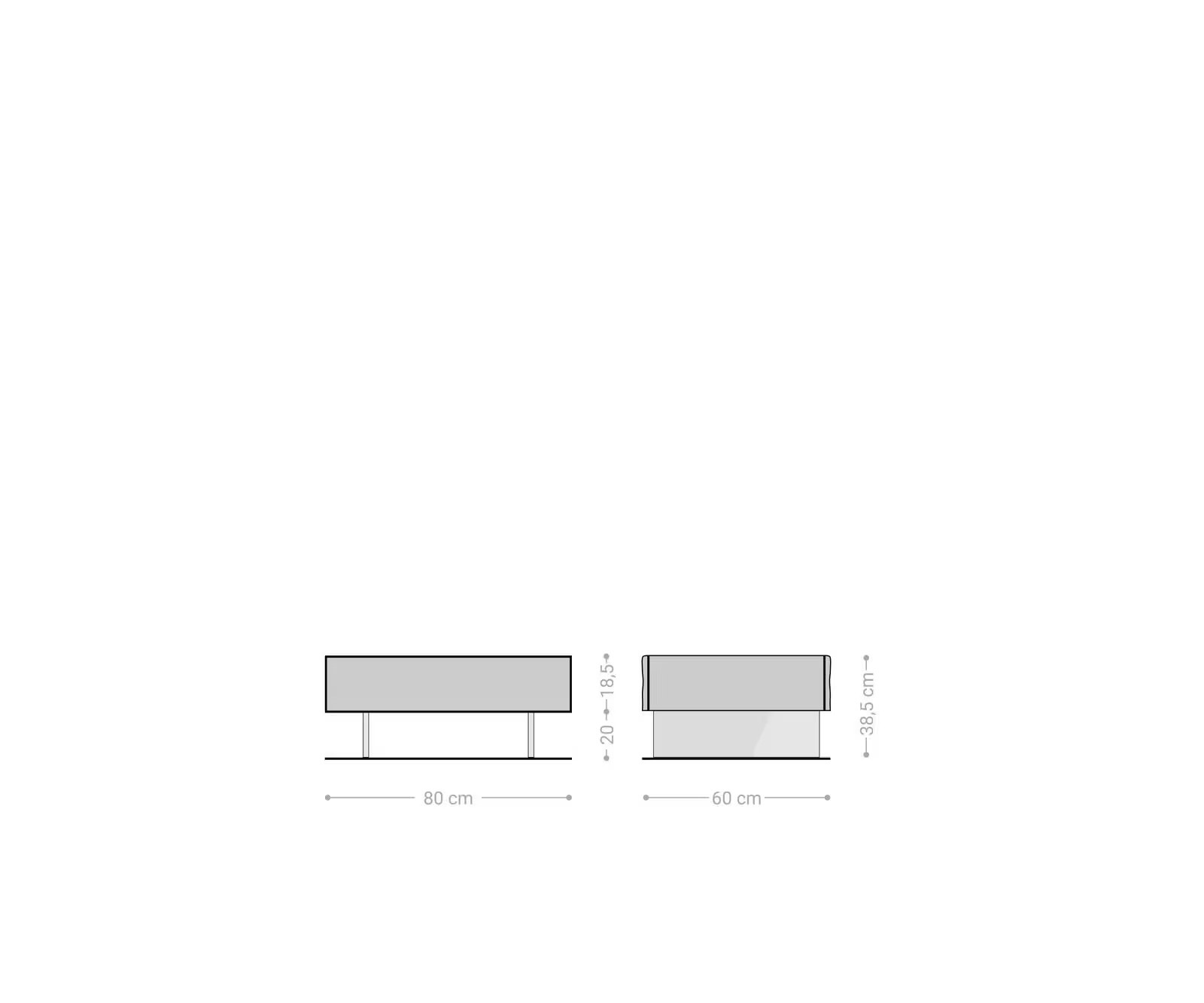 Méret: 80cm x 60cm x 38,5cm (hosszúság x szélesség x magasság)
