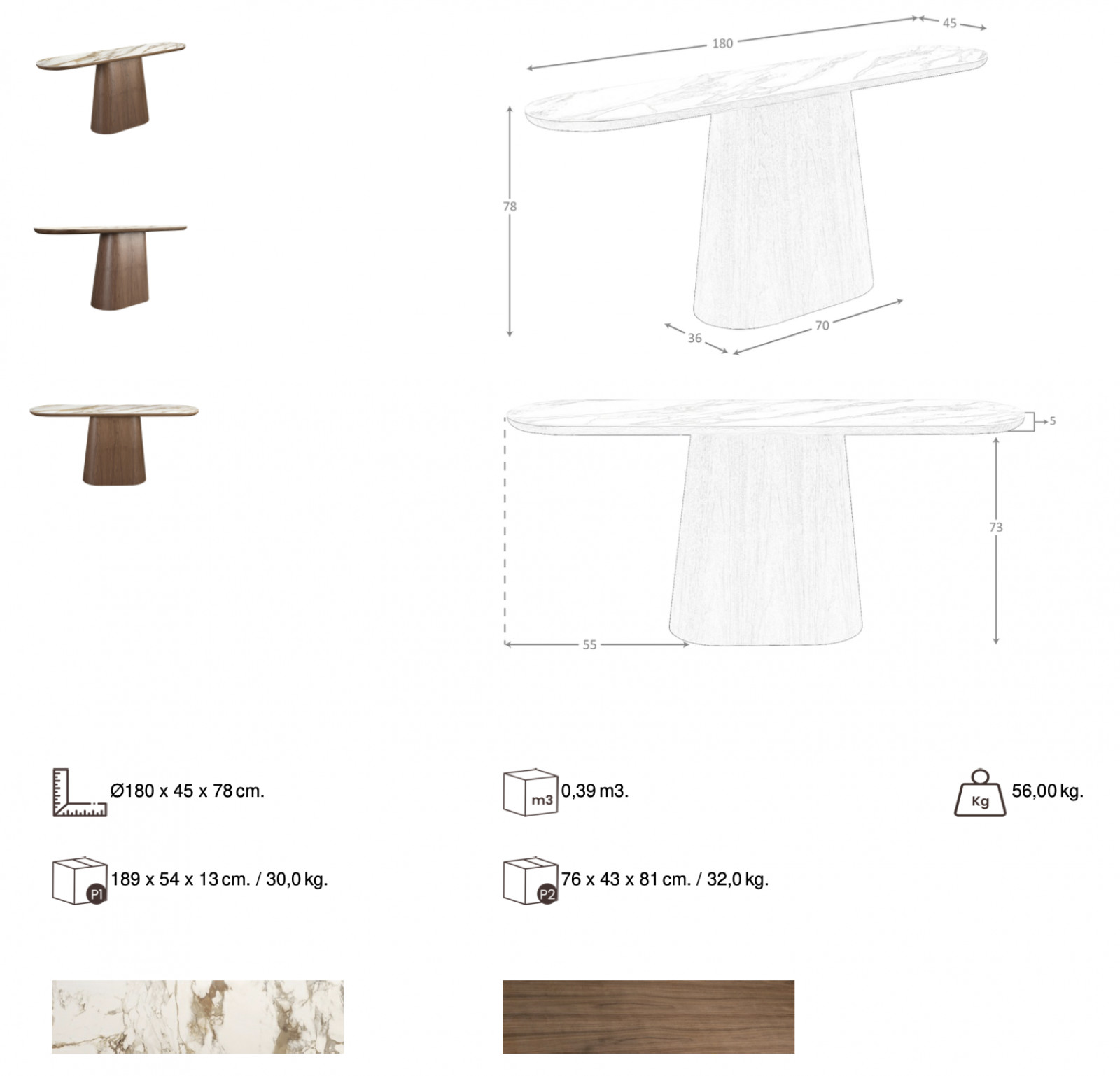 MACABEO prémium kerámia/dió konzolasztal - 180cm bemutatása