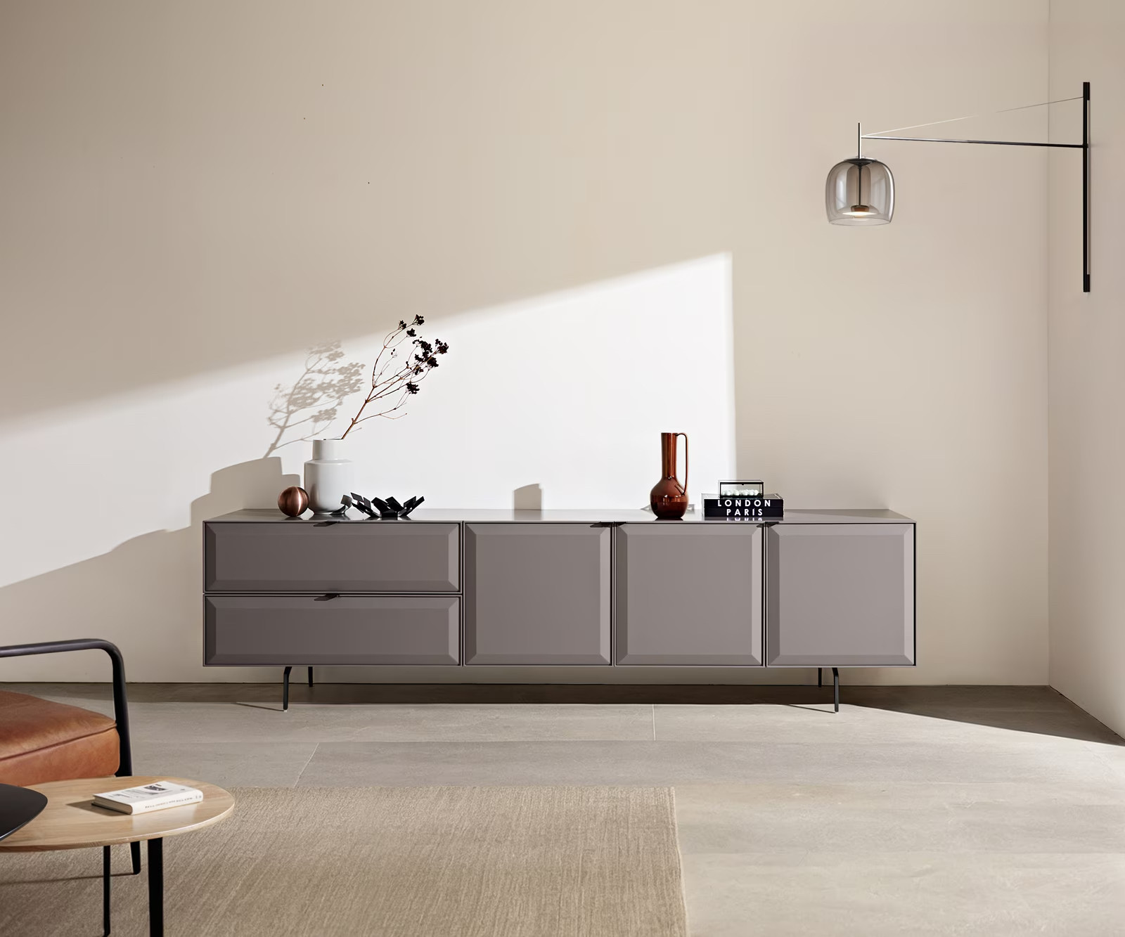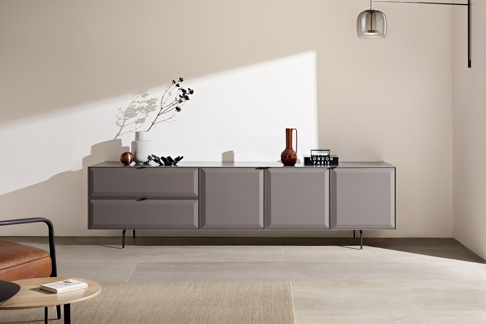 A MARELLIA TV-szekrény letisztult formavilágával és elegáns szürke színével a modern enteriőrök tökéletes kiegészítője. A Soft-Close mechanizmussal ellátott ajtók és fiókok csendes és kényelmes használatot biztosítanak, míg az előlapok finom, mégis karakteres megjelenést kölcsönöznek a bútornak.