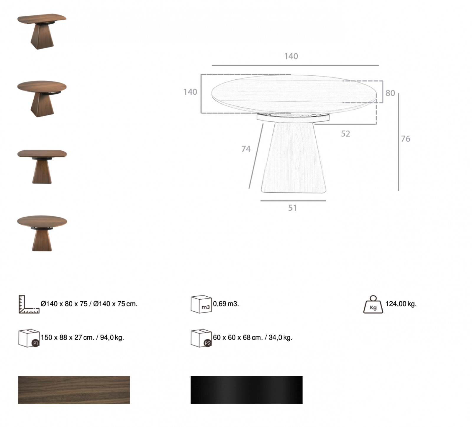 A MILAGROS étkezőasztal kifinomult és szemrevaló bútordarab. A letisztult formavilágot harmonikussá teszi a természetes diófa gyönyörű mintázata. Az asztal különlegessége, hogy a speciális forgó mechanizmussal előbújó bővítőlapok kerek formát hoznak létre. A bútorból sugárzik a minőség, készítését nagy műgonddal végezték, ügyelve a fafurnér pontos illeszkedésére.