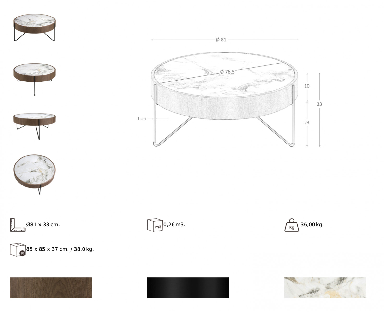 MILANA prémium dió/kerámia dohányzóasztal - 81cm bemutatása