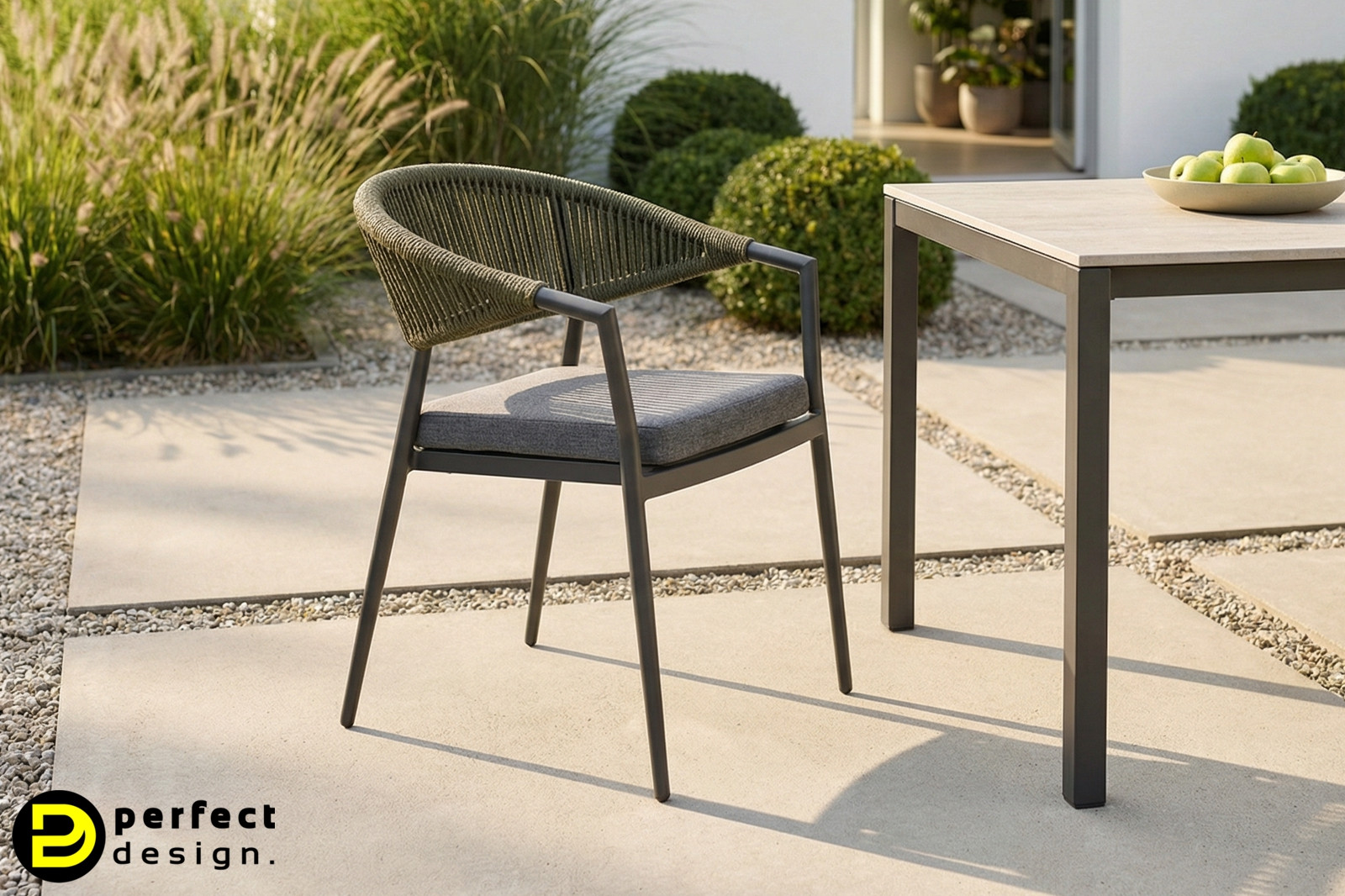 A MILLOR szék olasz tervezésű, prémium minőségű kerti bútor. A magas minőségű olefin bevonatú párnák rendkívül tartósak, ellenállnak az UV-sugárzásnak és víztaszítóak. A székek háttámlája (oldala) gumírozott poliészter kötélből készült, vázuk alumínium. A bútor exkluzivitását a minőségi anyaghasználat és az egyedi formaterv párosa adja.