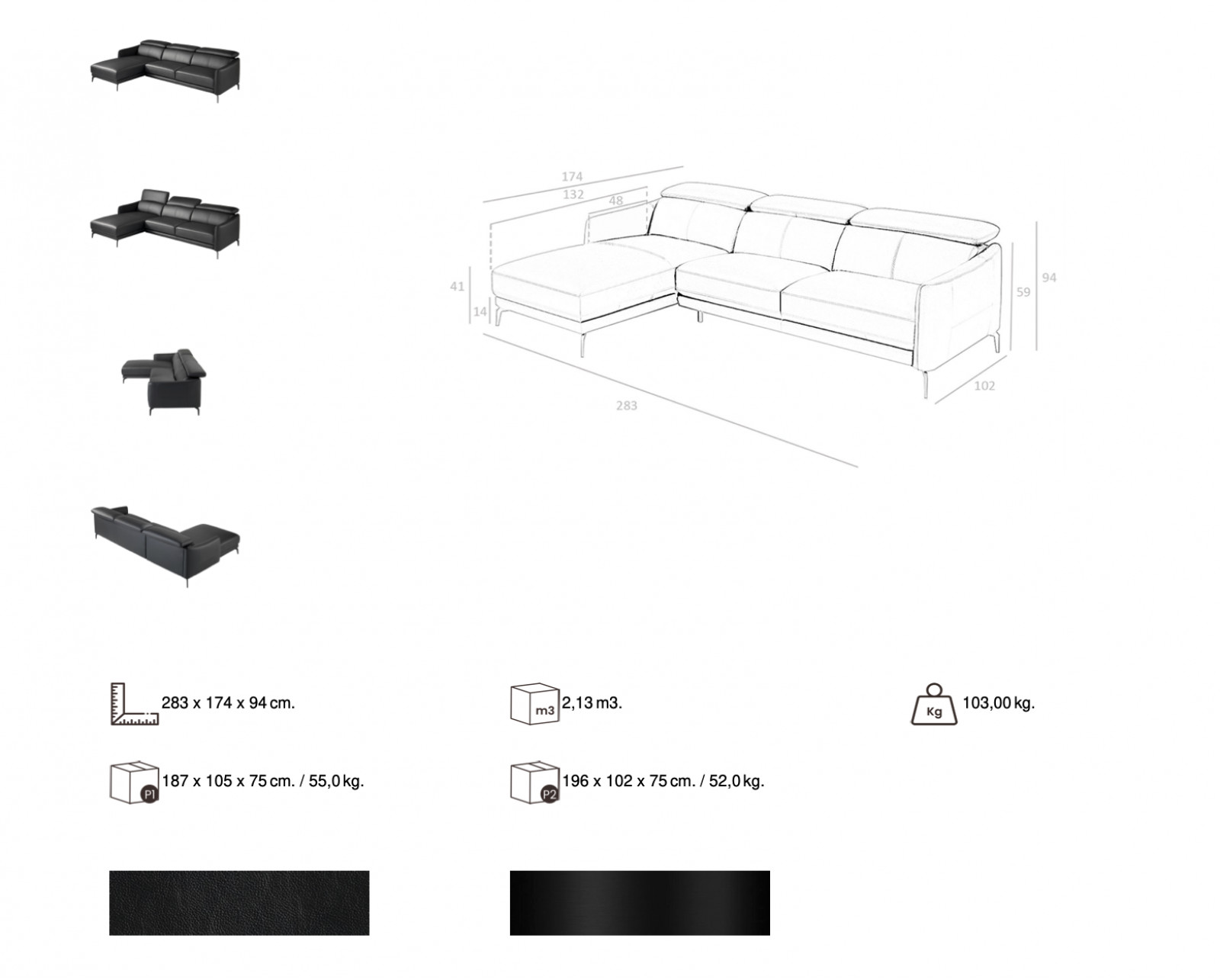 Méret: 283cm x 194cm x 94cm (hosszúság x mélység x magasság)