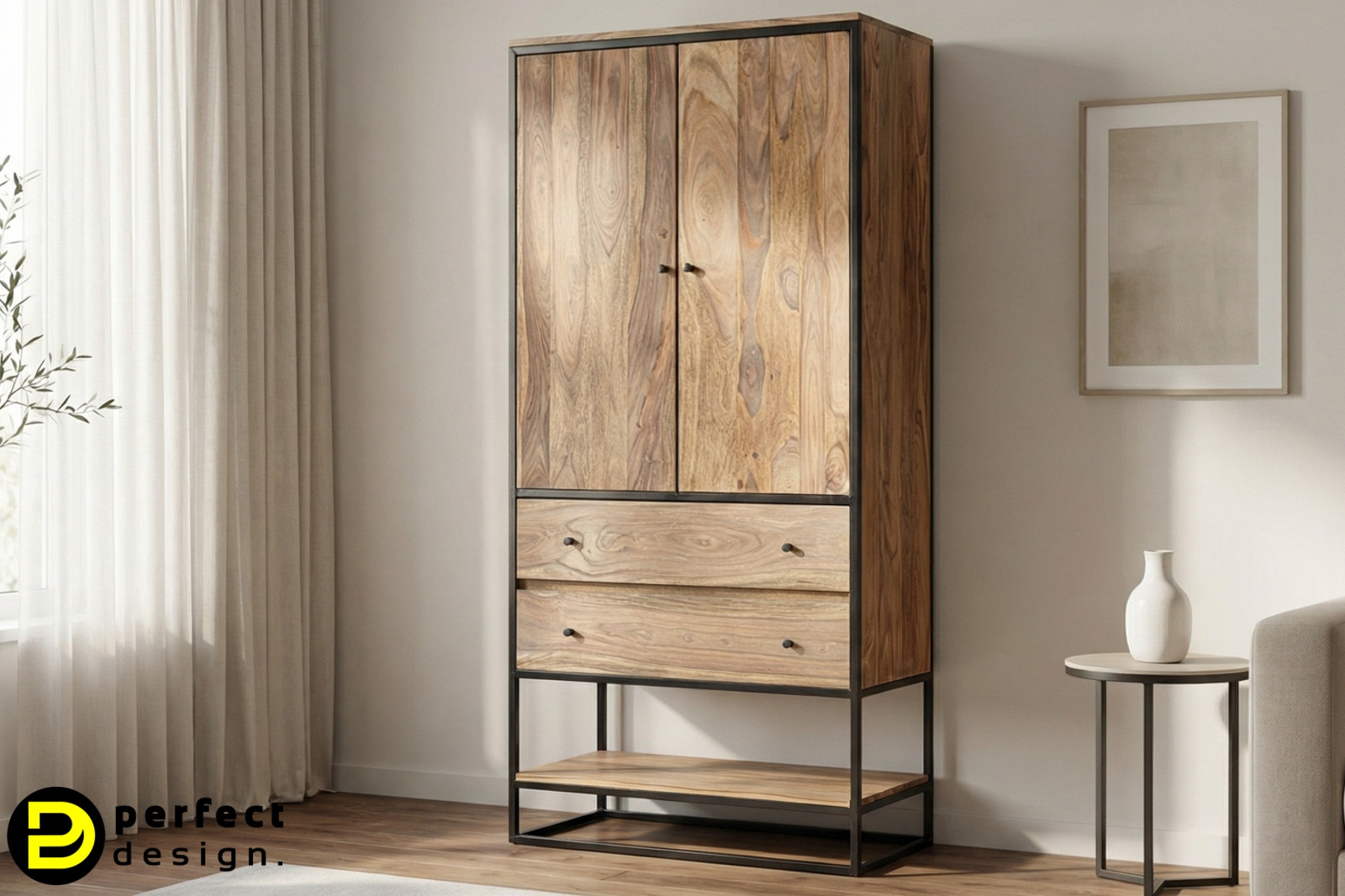 A NARTAN szekrény gyönyörű mintázatú rózsafából készült. A minimalista vonalvezetés kiemeli a fa természetes szépségét. A modern fekete fém keret fiatalossá teszi a bútordarabot. Nyitott és zart rekeszei, illetve fiókjai számos funkciót kínálnak a tárolásra.