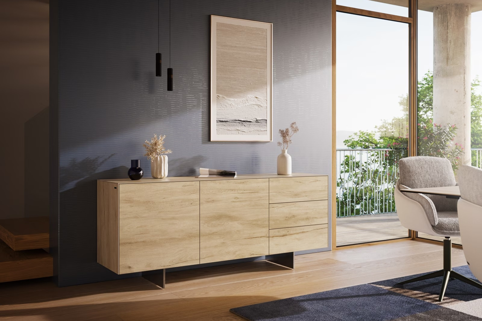 A NATIVO komód letisztult formavilága és push-to-open mechanikája tovább erősíti a kortárs esztétikát, miközben a külső megjelenés élénk, de mégis visszafogott marad – tökéletes választás minden modern nappaliba vagy étkezőbe.