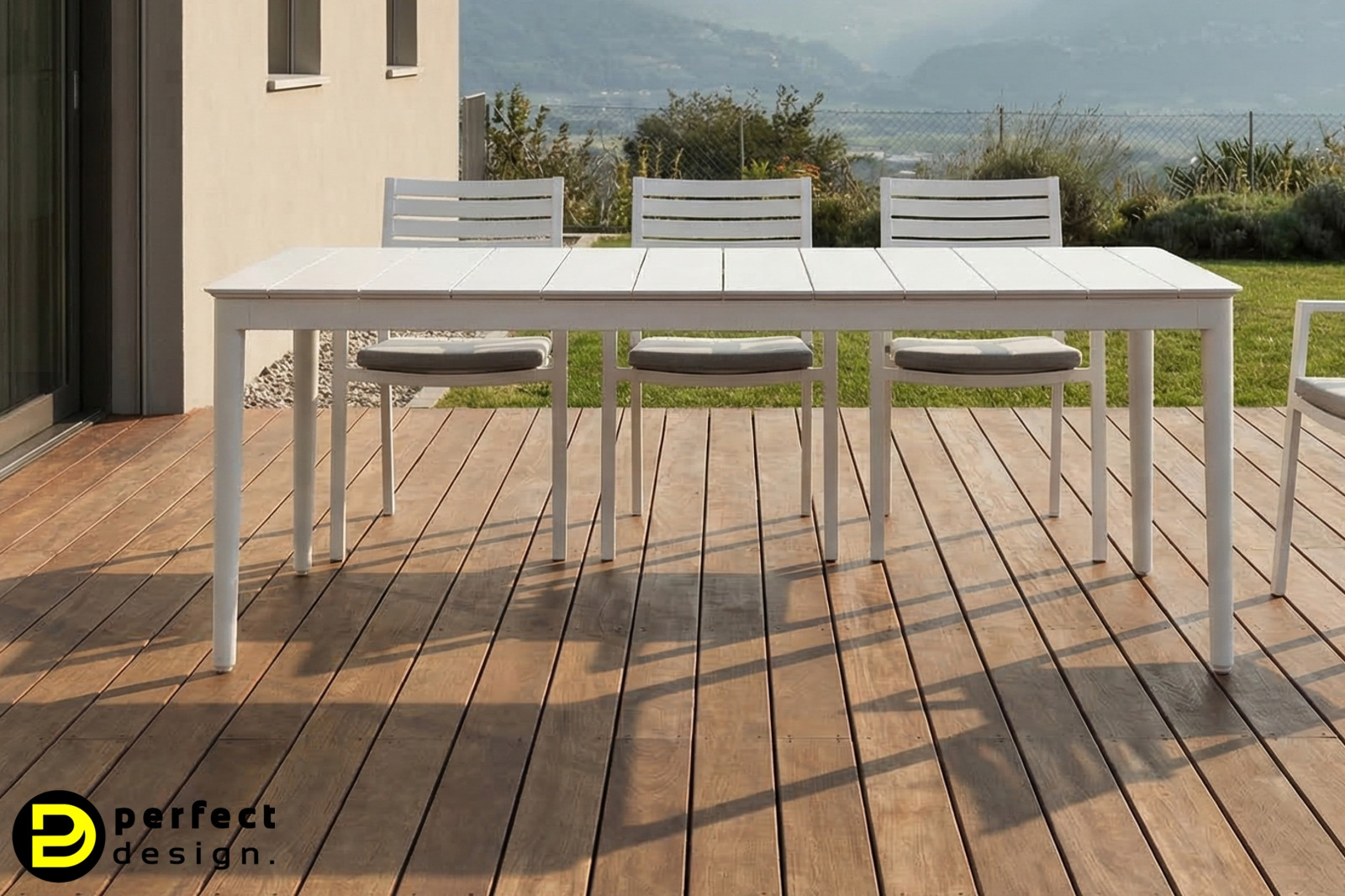NEBULA prémium kültéri étkezőasztal - 160cm - fehér bemutatása