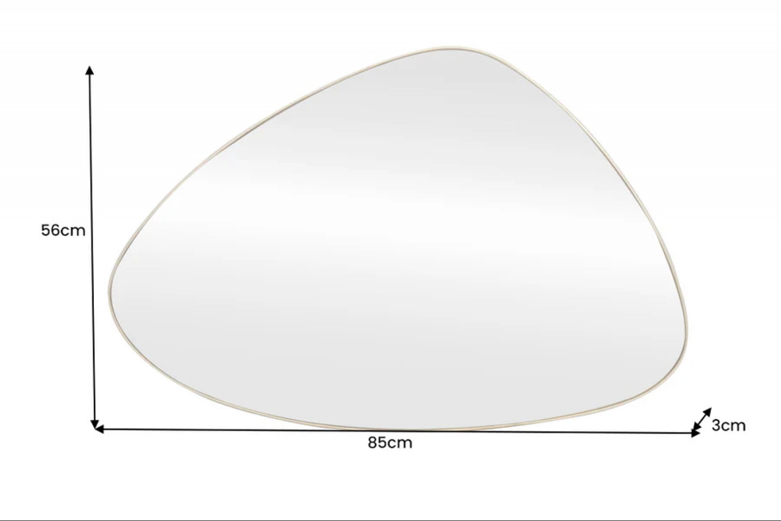 A NOEMI fali tükör egy letisztult, mégis karakteres design-darab, amely organikusan ívelt, aszimmetrikus formájával friss hangulatot visz a falra. A filigrán arany keret finoman emeli ki a tükröző felületet, miközben könnyed, elegáns megjelenést kölcsönöz a térnek.