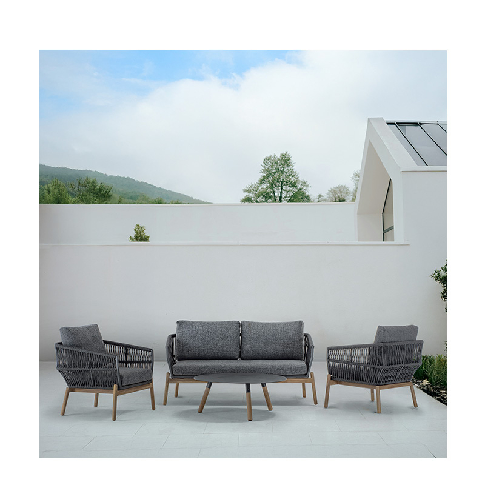 A NUBIA egy prémium minőségű kültéri lounge szett, amely a kortárs olasz design letisztult eleganciáját és a magas szintű kényelmet képviseli. Harmonikus arányai és visszafogott formavilága természetes könnyedséggel illeszkedik a kert vagy a terasz környezetébe.
