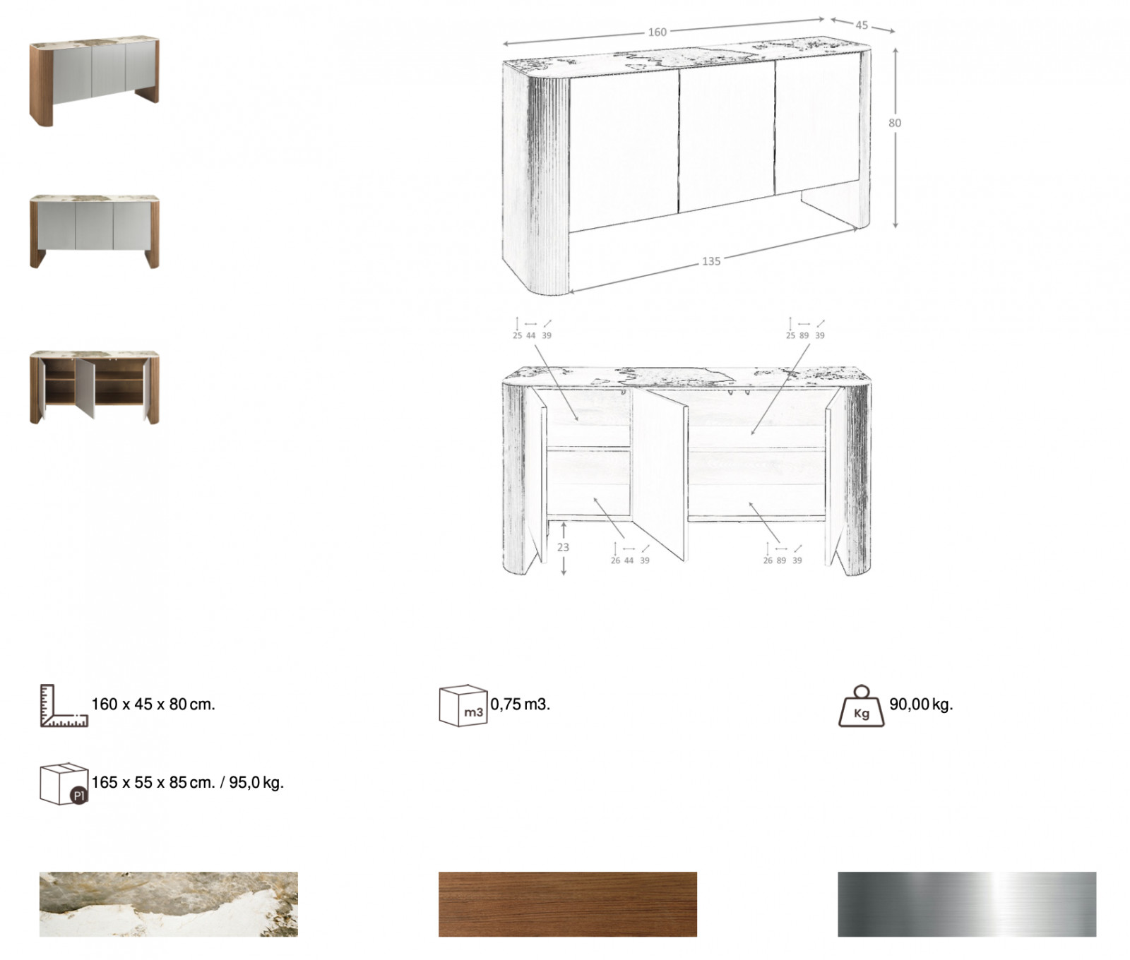 Az OLIANA komód exkluzív és elegáns. A márvány hatású kerámia lappal fedett bútor különlegessége a bordázott, íves kialakítású láb. A letisztult, szürke színű ajtók modern megjelenést kölccsönöznek a bútornak. A nyomásra nyííló ajtók praktikus tárolórekeszeket rejtenek. Kínálatunkban megtalálja az OLIANA termékcsalád többi tagját is. A bútoron azonnal szembetűnik a minőségi anyaghasználat és gondos kivitelezés.