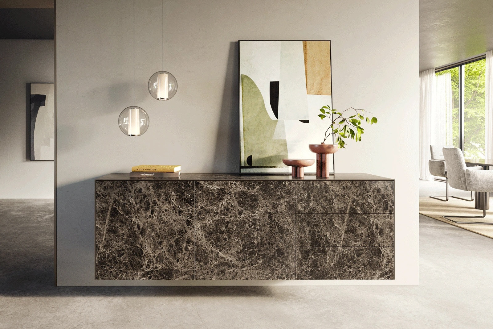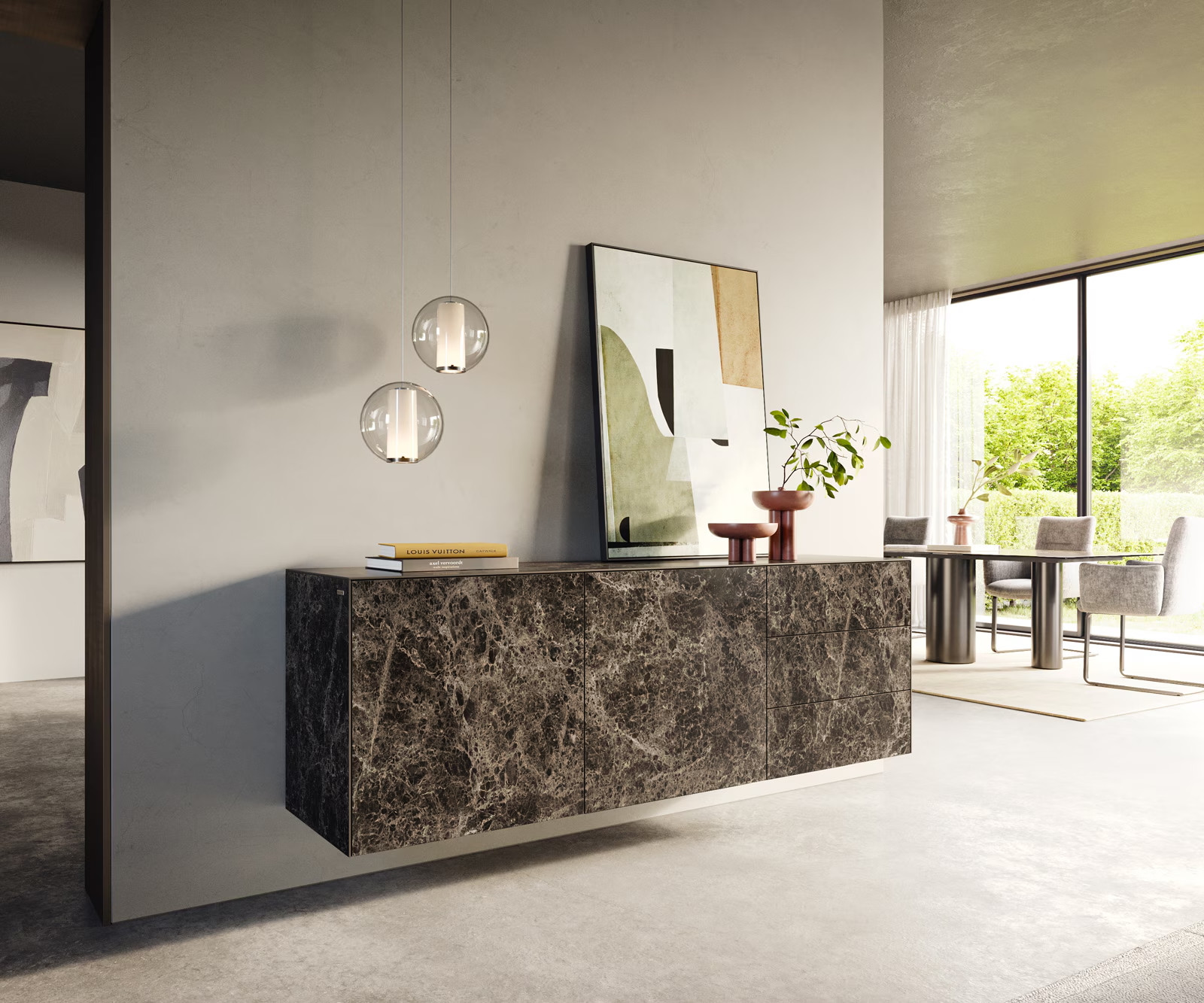 A PALAZZO komód letisztult formavilága és push-to-open mechanikája tovább erősíti a kortárs esztétikát, miközben a külső megjelenés élénk, de mégis visszafogott marad – tökéletes választás minden modern nappaliba vagy étkezőbe.