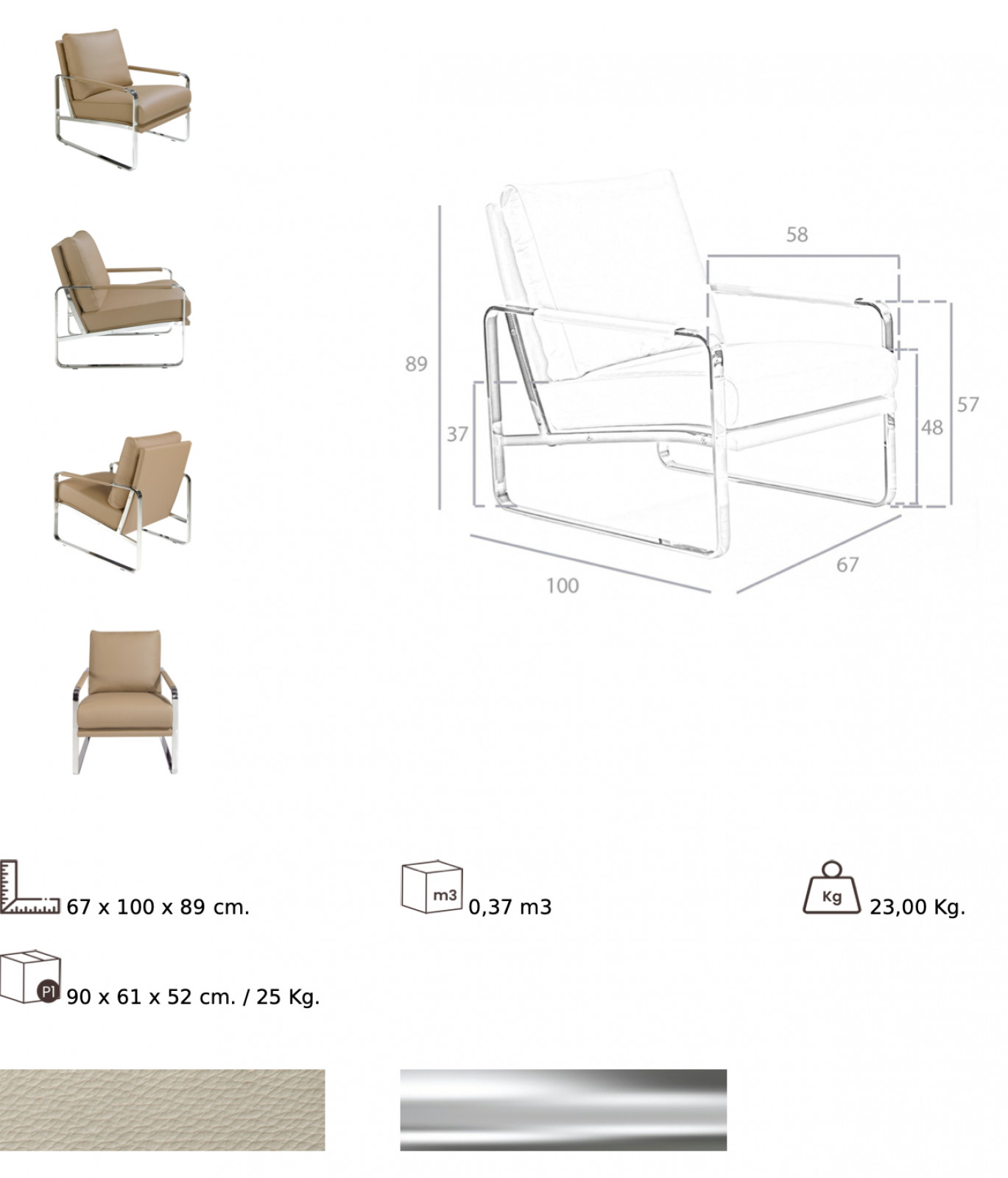 A PAMPLONA fotel modern és letisztult. A kényelmes kialakítású fotelt minimalista jegyek jellemzik. A minőségi szintetikus bőrrel bevont ülőfelületet csillogóan fényes rozsdamentes acél lábak támasztják alá. Kortalan stílusa kifinomult és lenyűgöző.