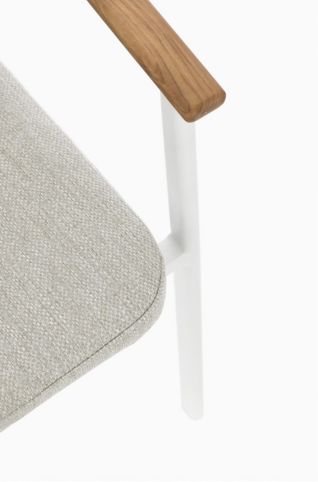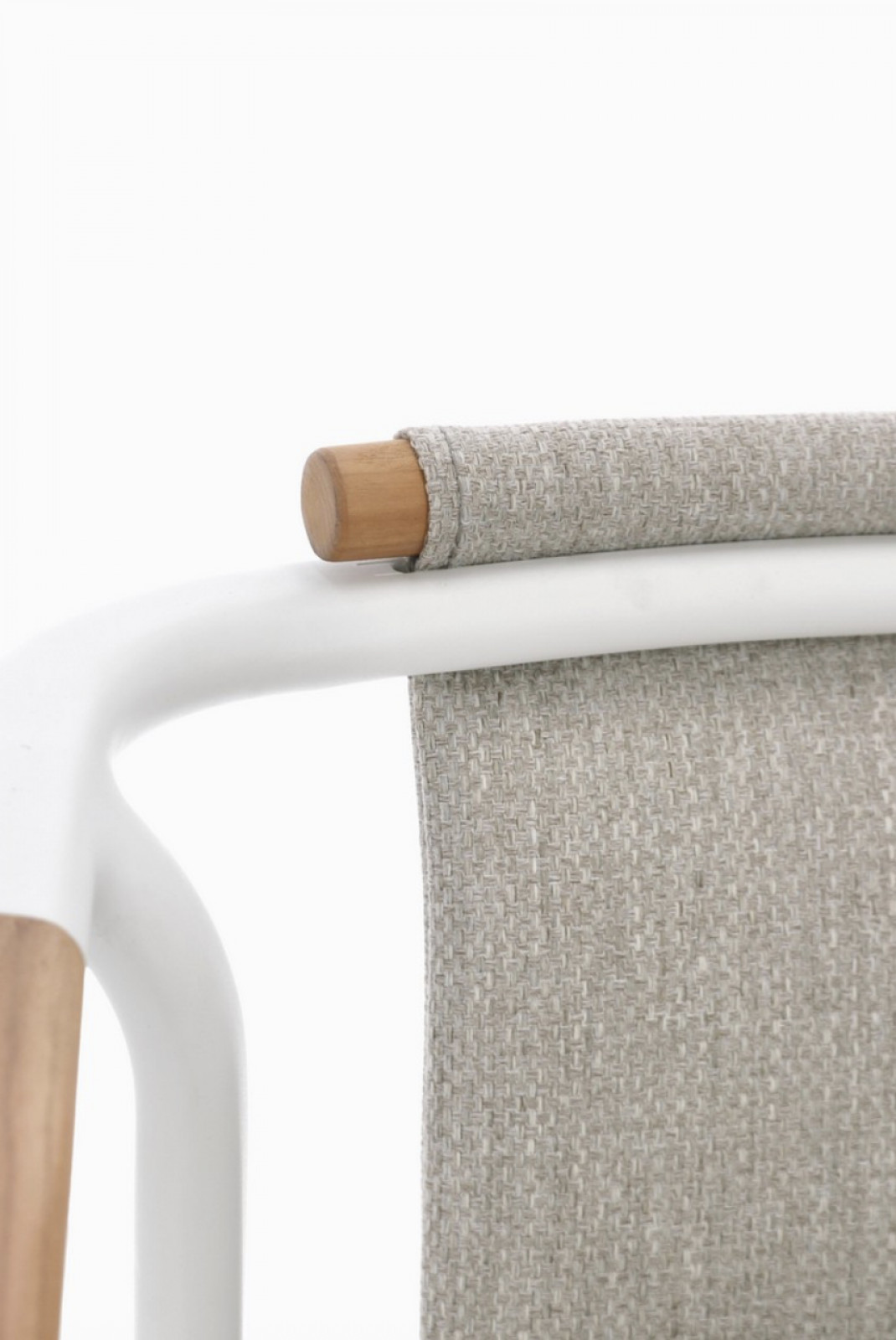 Anyag: alumínium, boucle hatású olefin szövet (100% polipropilén), teakfa