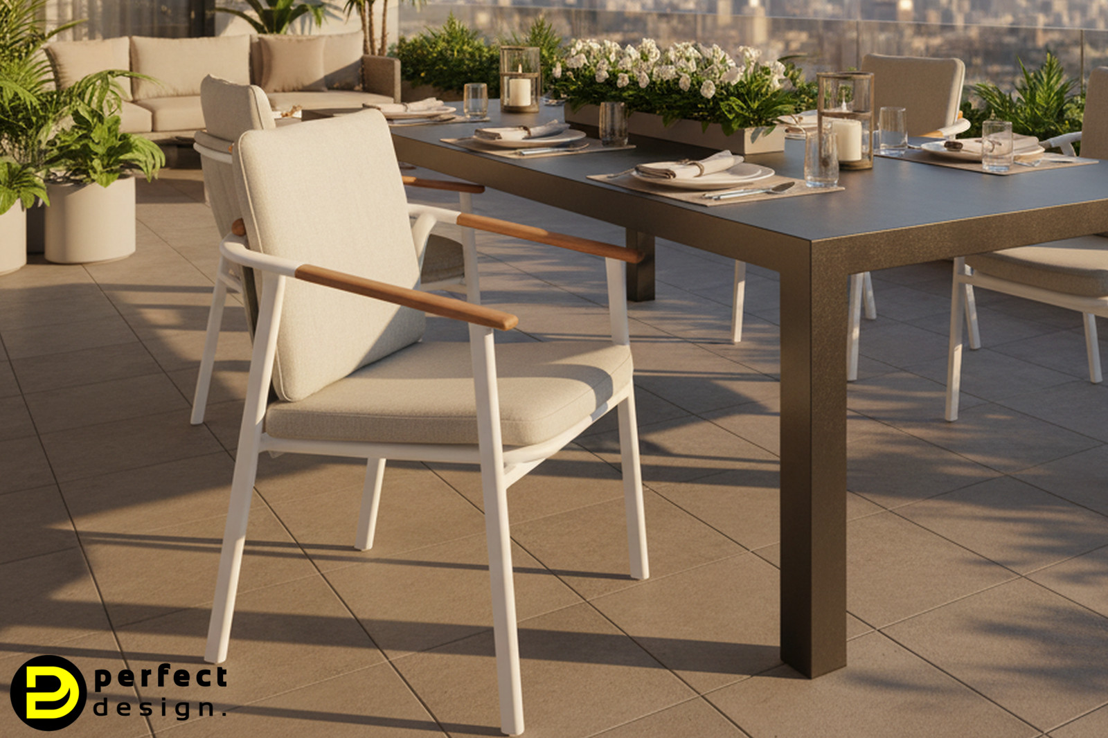 A PATIO olasz tervezésű, prémium minőségű kerti szék. Kültéri székeink a kortárs formatervezés, a kényelmes kialakítás és az időjárásálló minőség harmonikus egységét képviselik. Letisztult vonalvezetésük és gondosan megválasztott anyagaik biztosítják, hogy a szék nemcsak funkcionális ülőbútor, hanem stílusos kiegészítője is legyen a kertnek, terasznak vagy erkélynek.