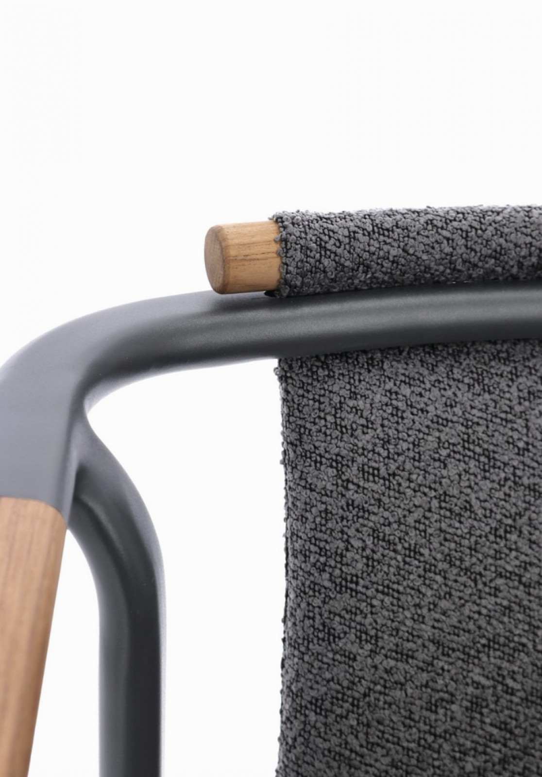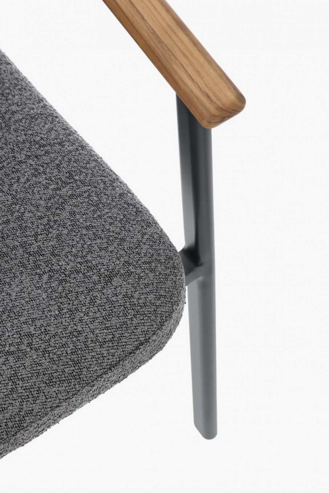 Anyag: alumínium, boucle hatású olefin szövet (100% polipropilén), teakfa