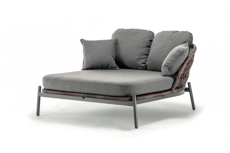 A PORTOFINO napozóágy olasz tervezésű, prémium minőségű kerti bútor. A magas minőségű akril szövettel bevont párna rendkívül tartós, ellenáll az UV-sugárzásnak és víztaszító. A bútor korpusza gumírozott fonott kötélből készült, vázuk alumínium. A bútor exkluzivitását a minőségi anyaghasználat és az egyedi formaterv párosa adja.