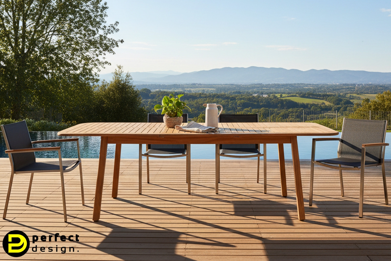 A PURE kültéri étkezőasztal olasz formaterv alapján készült, letisztult, modern vonalvezetésével és kiegyensúlyozott arányaival időtálló stílust visz a kertbe vagy a teraszra. A gondosan megválasztott, prémium minőségű, időjárásálló anyagok biztosítják, hogy a bútor hosszú távon is megőrizze esztétikus megjelenését és komfortját.  Az asztal olajozott akácfából készült, melynek naturális szépsége  találkozik a modern trendekkel.