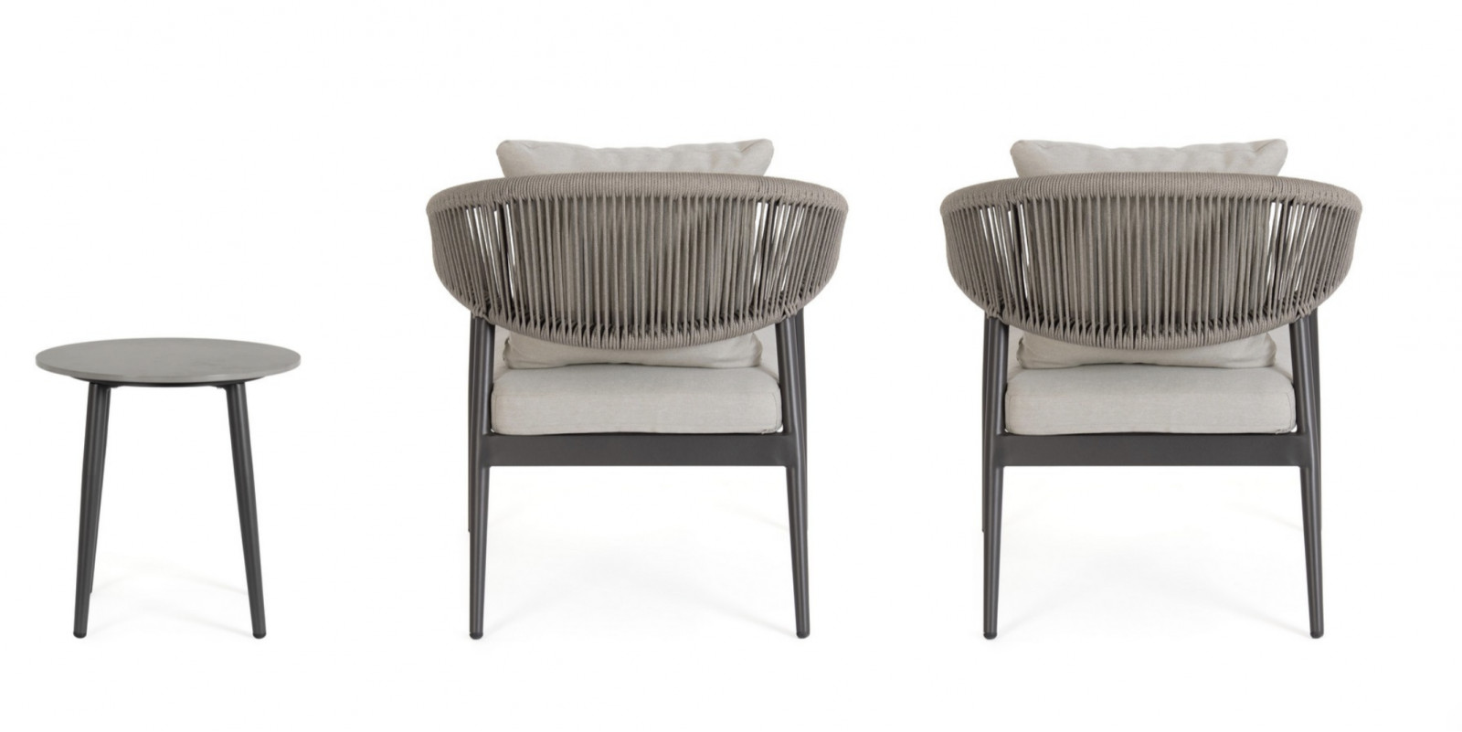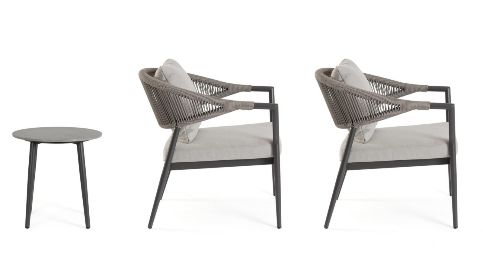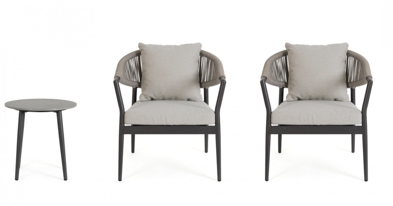 A RAVELLO kültéri fotel szett olasz formaterv alapján készült, letisztult, modern vonalvezetésével és kiegyensúlyozott arányaival időtálló eleganciát visz a kertbe vagy a teraszra. A gondosan megválasztott, prémium minőségű, időjárásálló anyagok biztosítják, hogy a szett hosszú távon is megőrizze esztétikus megjelenését és komfortját.